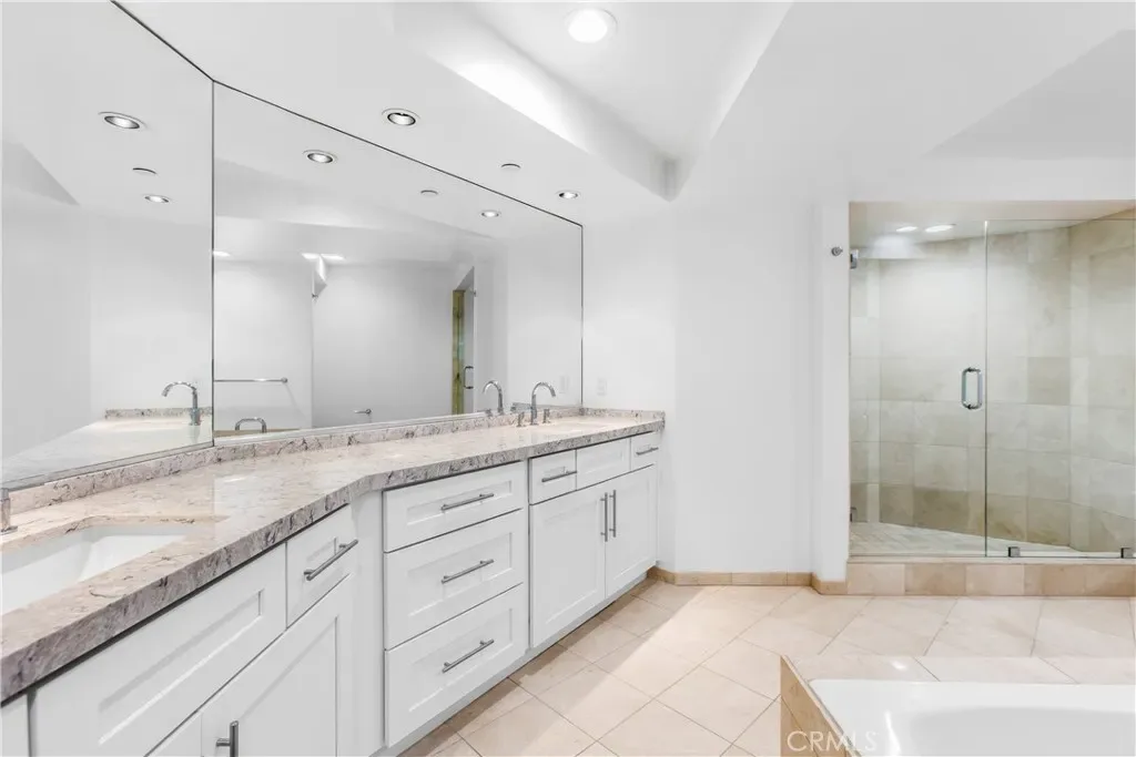 The expansive primary suite serves as a private retreat, complete with panoramic views, a spacious walk-in closet, and a spa-inspired en-suite bathroom with dual vanities, a soaking tub, and a separate glass-enclosed shower.
