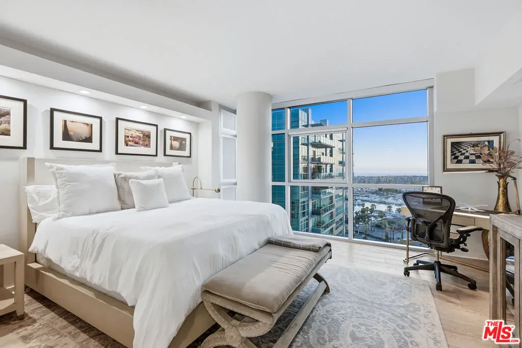 Spectacular Marina and Ocean views define this 17th-floor residence at the prestigious Azzurra. Showcasing one of the largest and most sought-after two-bedroom floor plans, this beautifully renovated home spans nearly 1,800 square feet and is perfectly oriented to the West — capturing breathtaking views, abundant natural light throughout the day, and a remarkable sunsets year-round. Thoughtfully designed for both comfort and entertaining, the open-concept layout features high ceilings, gorgeous hardwood flooring, and expansive living and dining areas that flow seamlessly to an oversized private balcony — an ideal setting to take in the panoramic coastal views. The chef’s kitchen is elegantly appointed with quartz countertops, custom cabinetry, stainless steel appliances, and a generous breakfast bar.Both bedrooms are generously scaled and positioned on opposite ends of the residence, offering ideal separation and privacy. The primary suite enjoys sweeping Marina and Ocean views and is complemented by a spa-inspired en-suite bath with dual vanities, deep soaking tub, separate glass-enclosed shower and more than ample closet space. Additional highlights include custom built-ins throughout the unit, a full-size laundry room with added storage, dual-zone HVAC’s, and two-car parking — delivering both functionality and everyday ease. HOA dues include cable, internet, water, trash, and earthquake insurance, along with access to an unparalleled collection of resort-style amenities: 24-hour valet for guests, full-service front desk and security, rooftop spa and sky lounge, heated pool and spa with private cabanas, media lounge, curated art collection, and expansive indoor/outdoor fitness centers with dedicated yoga and Pilates studio. Ideally located just minutes from world-famous beaches, renowned dining and shopping, scenic bike paths, theaters, dog parks, LAX and much more! This is elevated coastal living at its finest.