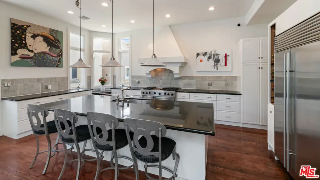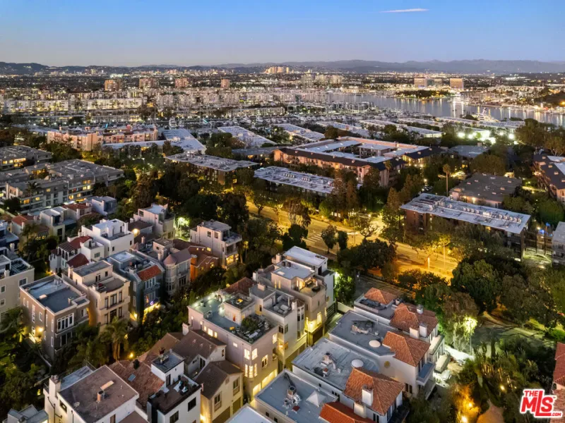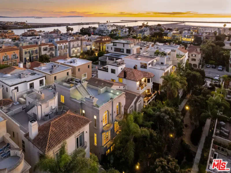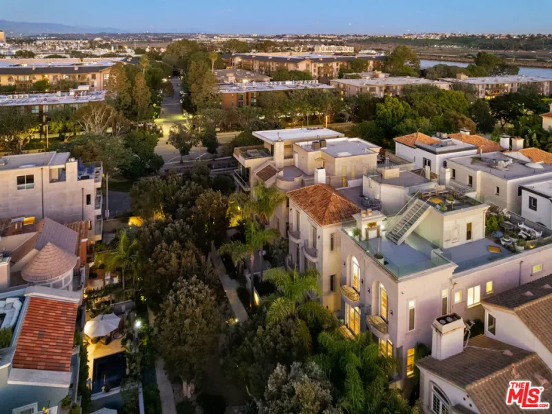 Welcome to a stunning multi level residence in the heart of Marina del Rey, thoughtfully designed to blend luxury, comfort, and coastal living. Upon entry, the lower level offers exceptional functionality with a spacious three-car garage, a private guest suite with its own en-suite bathroom, a dedicated office, and a generous family room that opens seamlessly to an open-air front patio, perfect for indoor-outdoor living and relaxed entertaining. An elevator conveniently located beside the garage takes you to the main living level, where you are greeted by an expansive living room anchored by a beautiful decorative fireplace and opening to a private balcony. This level is ideal for both entertaining and everyday living, featuring a sophisticated dining area and a gourmet kitchen designed to impress. The kitchen boasts dual ovens, an elegant wine rack, premium finishes, and its own decorative fireplace, creating a warm and inviting space for gatherings. Upstairs is dedicated to a truly breathtaking primary retreat. The primary suite features a cozy decorative fireplace, private balcony, and an adjoining bonus room ideal for a home office or lounge. The spa-inspired en-suite bathroom is a sanctuary, complete with dual vanities, a large walk-in shower, a deep soaking tub. A spacious walk-in closet with a skylight fills the space with natural light, adding to the suite’s serene ambiance. Across the hall, two additional guest suites, each with its own en-suite bathroom, provide comfort and privacy for family or visiting friends. At the top of the home, two spectacular rooftop decks crown the residence, offering sweeping panoramic views of the ocean, mountains, and city skyline. Whether hosting unforgettable sunsets or enjoying peaceful moments under the stars, these rooftop spaces deliver the ultimate Southern California lifestyle. This exceptional Marina del Rey home is a rare blend of elegance, functionality, and breathtaking views, designed for those who appreciate refined coastal living at its finest.