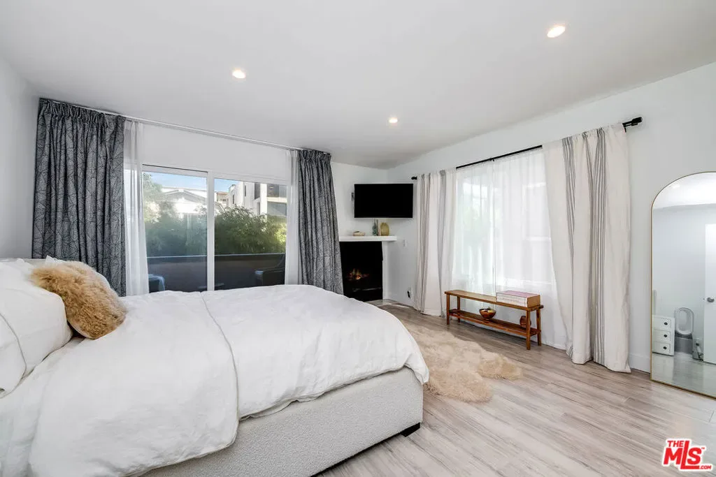 Experience coastal living at its finest in this beautifully updated two-story corner condo, just steps from the sand on the coveted south end of the Marina del Rey Peninsula. Thoughtfully renovated with a sleek, modern aesthetic, this home offers a bright and airy main level with an open floor plan that includes a dining area, cozy living room with fireplace, and a custom-designed kitchen featuring warm wood cabinetry, quartz countertops, and stainless steel appliances. Upstairs, the primary suite occupies its own private level, complete with a stylishly remodeled en-suite bathroom. The second bedroom offers great natural light, generous closet space, and a sense of seclusion. Enjoy ocean breezes and views from your private balcony, overlooking the picturesque walk street of Quarterdeck. A second, beautifully finished bathroom serves the main level. The unit also includes two parking spaces in a secure, elevator-equipped building, all within a short distance to the beach, Abbot Kinney Boulevard, and some of the best local shops and restaurants in LA. Beachside living at its absolute finest.