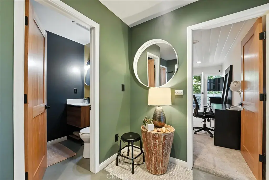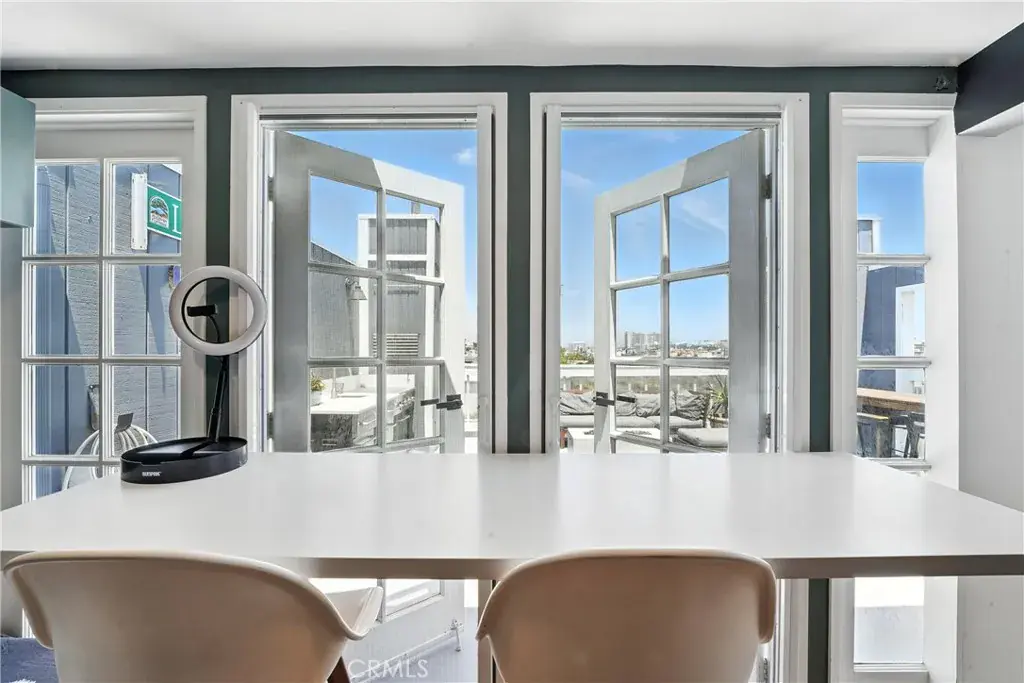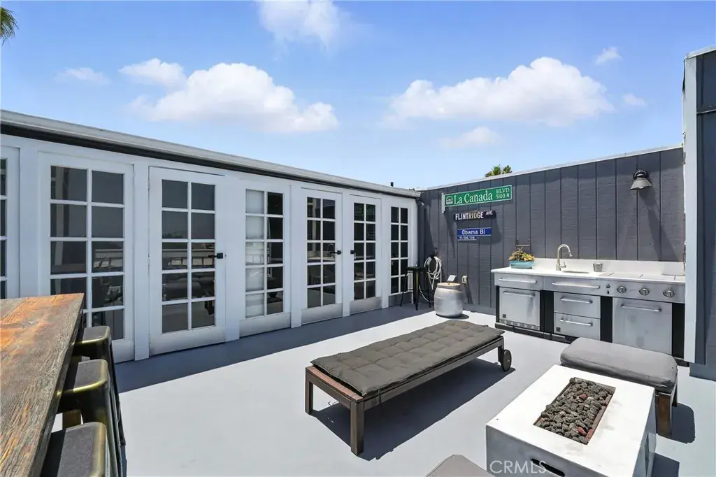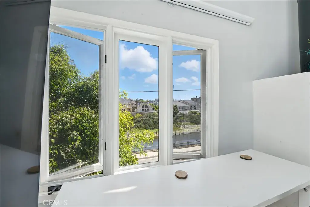 The third level loft includes an ensuite bathroom, ample closet space, and canal views. Step into the top level that offers a flexible space for an office, studio, or den, with direct access to an expansive rooftop deck. Enjoy outdoor living with a built-in kitchen, fire pit, patio seating, and views of the canal, mountains, and Hollywood sign.