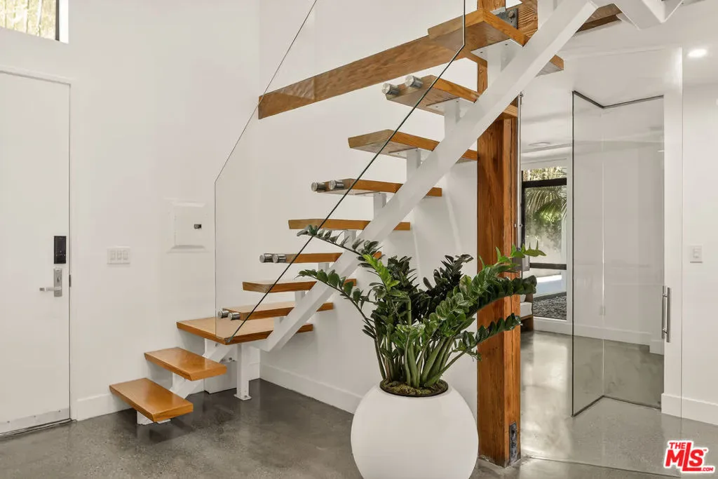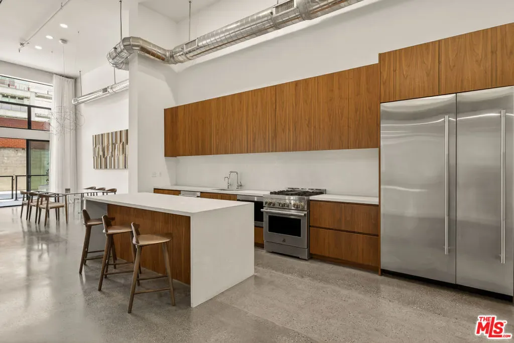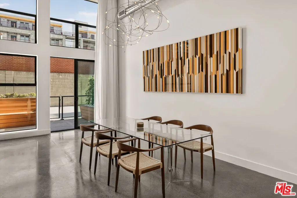 A rare architectural statement in Marina del Rey’s coveted Arts District, this exceptional New York inspired loft has been masterfully reimagined with over $500,000 in bespoke, designer-level upgrades, creating a true one-of-one residence that outshines every other loft in the building. Soaring 17-foot ceilings and dramatic floor-to-ceiling glass flood the interiors with natural light, delivering a gallery-like ambiance equally suited to refined daily living and elevated entertaining. One of the few ground-floor homes, it also offers a private patio that seamlessly extends the living space outdoors, perfectly positioned moments from Abbot Kinney, the Venice Boardwalk, and the Marina waterfront. Every element was redesigned with uncompromising quality, from polished concrete floors on the main level to engineered hardwood upstairs accented by natural red oak details, smooth-finish walls, and automated 17-foot floor-to-ceiling curtains and sheers. A striking custom steel-and-glass staircase with sleek glass railings anchors the residence as a sculptural centerpiece. Statement design details include a Mooi copper designer light fixture, custom solid oak built-ins and furnishings, European luxury faucets and hardware, a floor-to-ceiling glass door in the secondary bedroom, and tailored patio seating. The home is fully integrated and wired for seamless modern living, featuring a Control4 smart home system that manages lighting, TVs, and built-in speakers, a whole-home sound system, newly installed wiring for audio/internet/automation, recessed LED lighting throughout, two large built-in televisions, and Nest climate control. The chef’s kitchen is both functional and striking, showcasing custom walnut cabinetry, Caesarstone countertops with a full-height backsplash, and premium JennAir appliances including a column refrigerator and freezer, professional range, dishwasher, and microwave/convection oven, plus a rare true external exhaust ventilation system uniquely installed in this unit. Two bedrooms provide separation and privacy, with a tranquil primary suite offering a custom walk-in closet and a spa-inspired marble bath with floor-to-ceiling tile, designer vanity, premium fixtures, and a frameless glass shower; the secondary bath is equally refined with a full remodel and curated finishes. Enjoy boutique amenities including a rooftop deck with panoramic city and sunset views, along with two tandem parking spaces equipped with dedicated EV charging plus additional guest charging. Approximately 1,865 sq ft with 2 bedrooms and 2 bathrooms, this is a rare opportunity to own a meticulously engineered, design-forward loft whose level of customization and structural approvals cannot be replicated today.