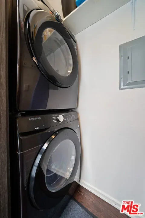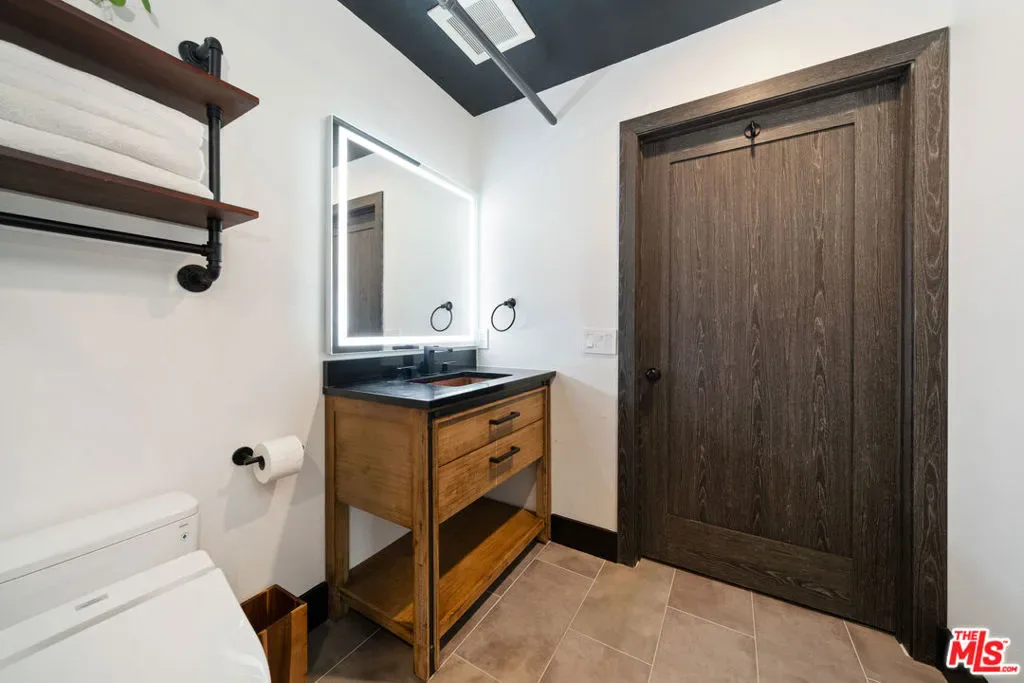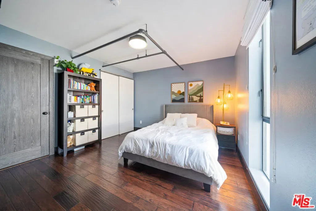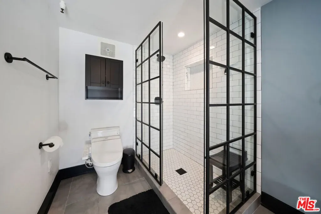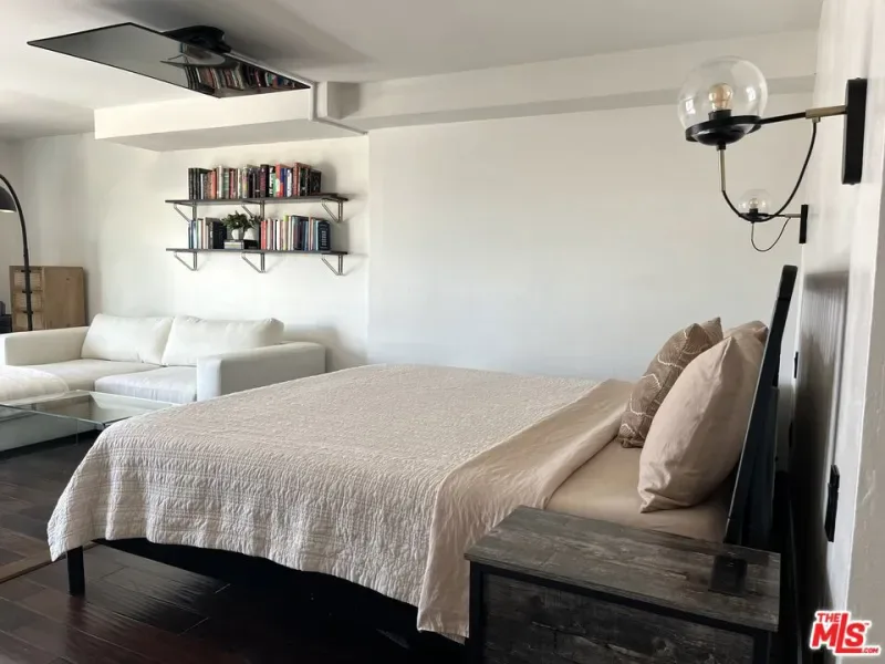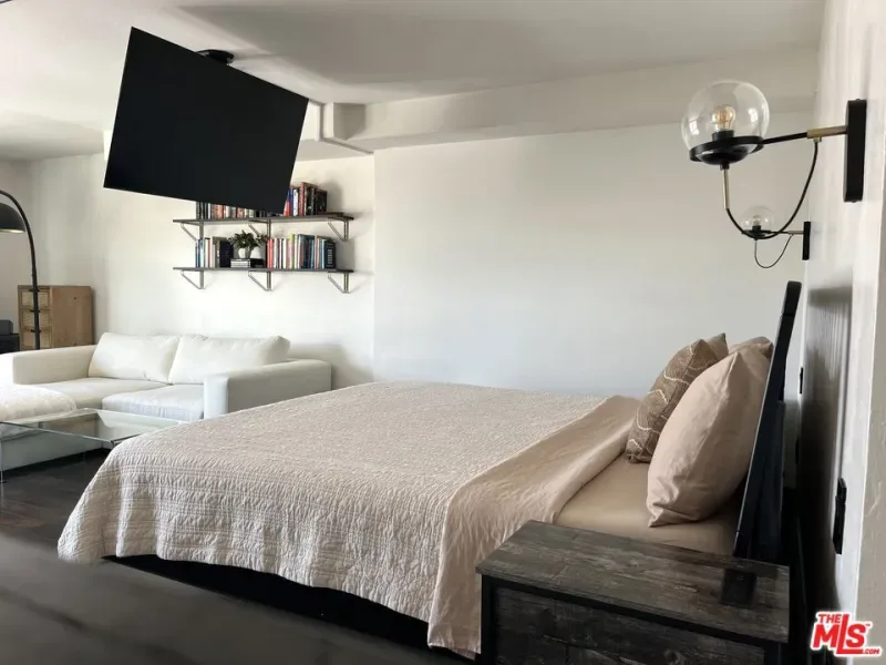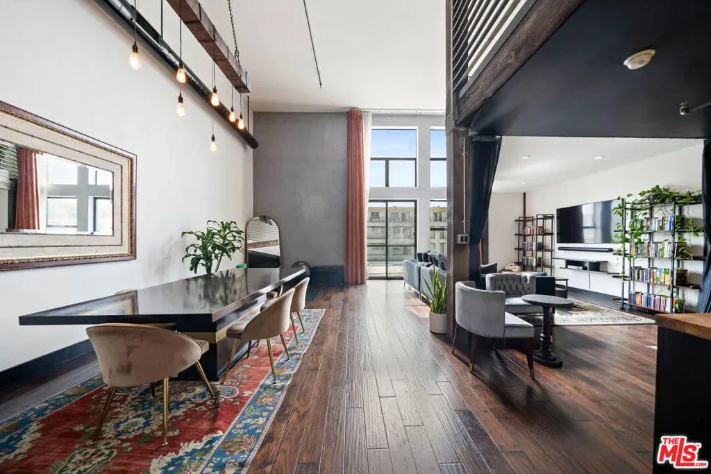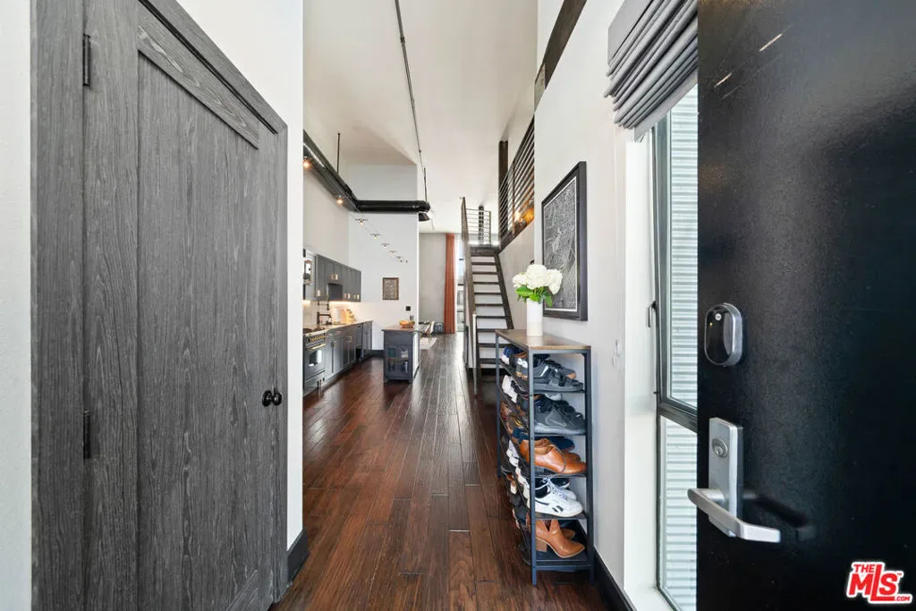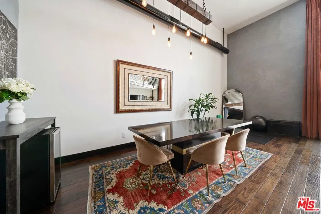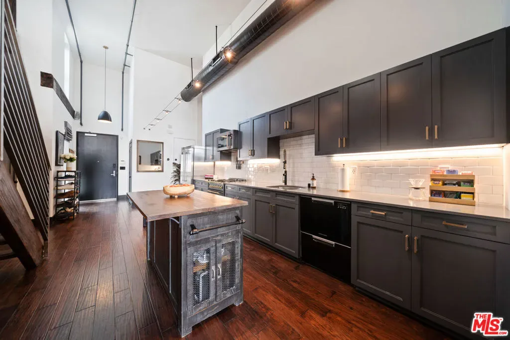 If you enjoy loft living, welcome to this stunning, remodeled top-floor loft, a true entertainer’s dream tucked into the Marina’s most dynamic and creative streets. Thoughtfully curated with high-end finishes and smart design, this condo blends dramatic architecture with modern comfort. Soaring 17+ foot ceilings and a wall of floor-to-ceiling windows flood the space with loads of natural light, framed by a custom motorized drapery that adds a bold designer touch. The open-concept layout includes a custom speakeasy-style bar, perfect for unwinding after a long day or kicking off an evening of entertainment or relaxation. The kitchen is a showpiece, featuring quartz countertops and a suite of top-tier appliances including a Viking Pro refrigerator, Ilve range, and Fisher & Paykel dishwasher. Both bathrooms are elevated with copper sinks, marble counters, custom-tiled showers, smart mirror lighting, and Toto bidet toilets. A private guest bedroom with en-suite bath is located on the main level, while the upstairs mezzanine hosts a spacious primary suite with a walk-in closet, room for a home office, and serene architectural views. Additional highlights include new HVAC 2024, custom cabinetry and doors, upgraded lighting, EV charging, guest parking, and a community rooftop deck with city views. Custom furnishings are negotiable with sale. Some images have been digitally altered to reflect lighter furniture.