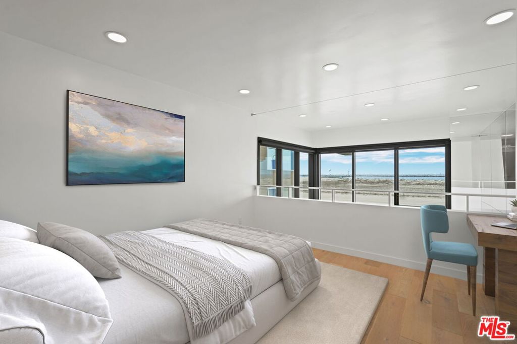 OCEANFRONT SOUTH CORNER, FULLY RENOVATED – Designer perfect condo with tremendous light all day! Gorgeous living room space with soaring 2-story ceilings, walls of glass where the ocean, blue skies and sand surrounds you, oak hardwood floors throughout, + an enormous private Ipe wood Oceanfront deck (outdoor living room) perfect for entertaining. The spacious contemporary kitchen is stunning with custom cabinetry, caesarstone countertops, Fisher & Paykel, Bosch stainless appliances, open to the dining and living room areas. The primary bedroom/loft has direct ocean and Channel views with an exquisite ensuite master bathroom complete with an oversized walk-in shower, dual vanity with head on ocean views. The second bedroom is separate and private with a beautifully done bathroom. Additionally, there is in unit laundry, parking for two cars plus additional storage in the garage. Move in and enjoy oceanfront living at its finest! Walking distance to the main Channel, the canals, plentiful farmers markets, excellent restaurants, shopping, and easy bike ride to Abbot Kinney shops and restaurants and all the Marina Del Rey Peninsula neighborhood has to offer.