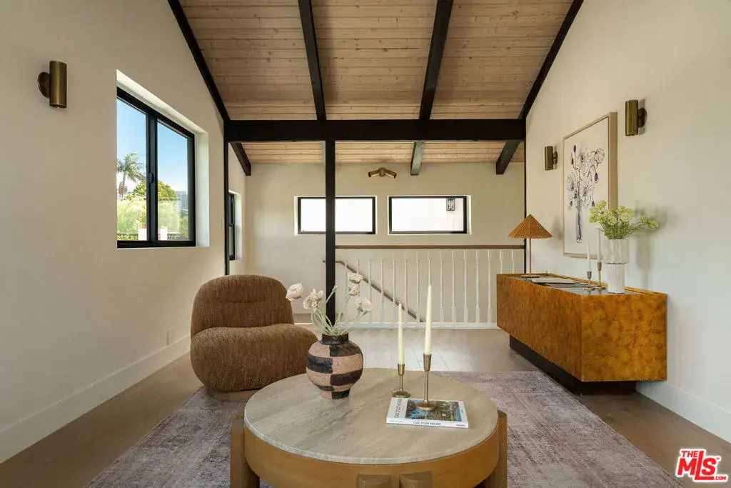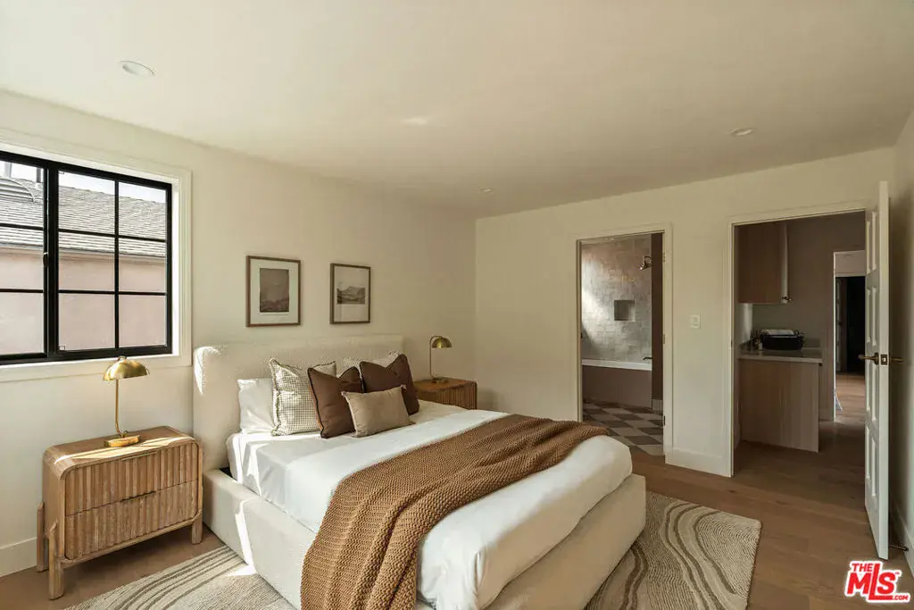 Set on a rare double lot in the Oxford Triangle, this home delivers timeless design and effortless coastal living in one of the area’s most coveted pockets. The 4BR/5BA residence showcases lime-washed walls, vaulted ceilings, and wall-to-wall sliding glass doors for seamless indoor-outdoor enjoyment. The primary suite offers Taj Mahal stone finishes, a spa-inspired shower, walk-in closet, double-door entry, and a private view deck. All additional bedrooms include ensuite baths for comfort and privacy. A custom stone fireplace anchors the bright living room, complemented by oversized picture windows. Upstairs, a flexible lounge works beautifully as a media room, cocktail lounge, or quiet reading space. Outdoors is a true highlight, offering multiple spaces to gather and unwind, an entertainer’s deck with built-in barbecue and bar seating, a dedicated dining area, and an expansive lounge setting. Beyond, a grassy yard brings an unexpected sense of openness, while the gated front yard and dual front/alley access add privacy and convenience. Just minutes to the beach and Abbot Kinney.