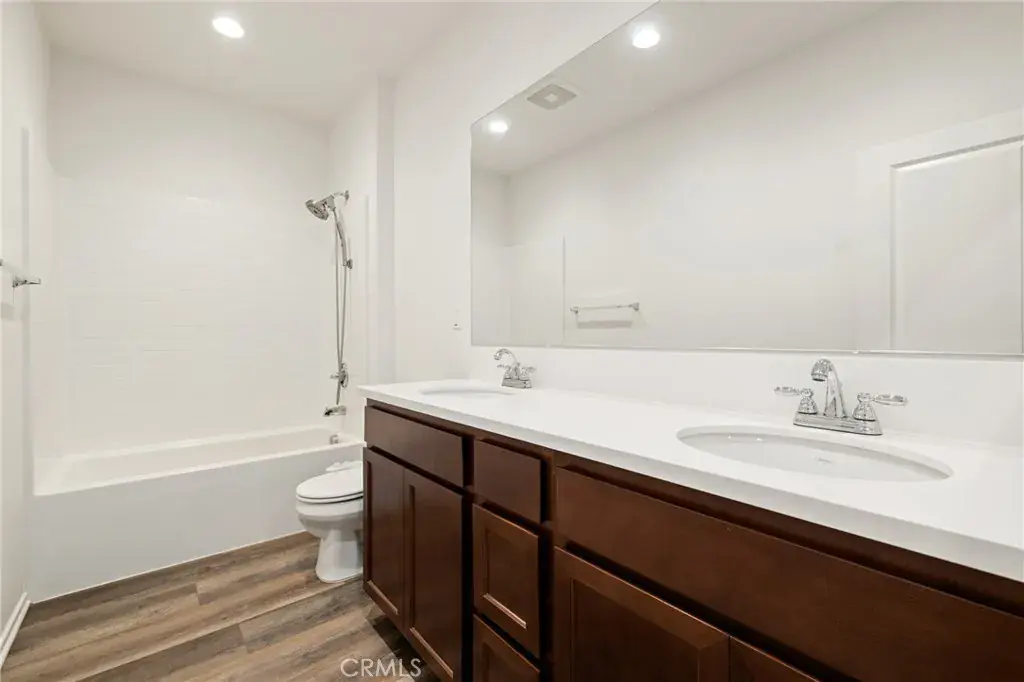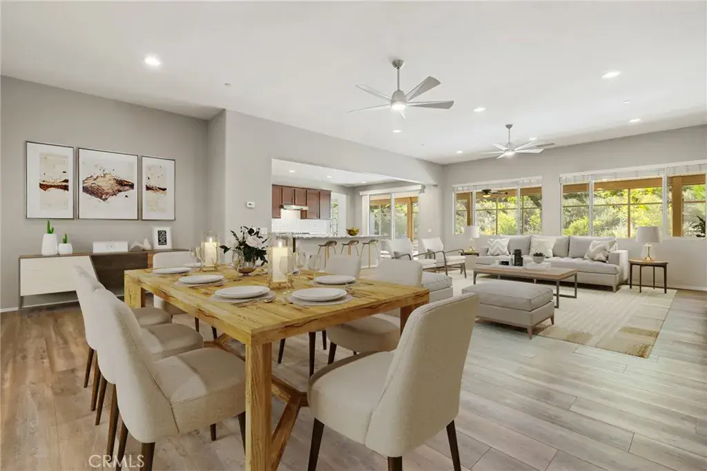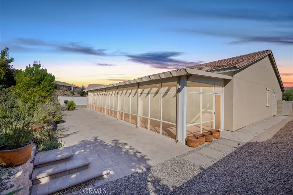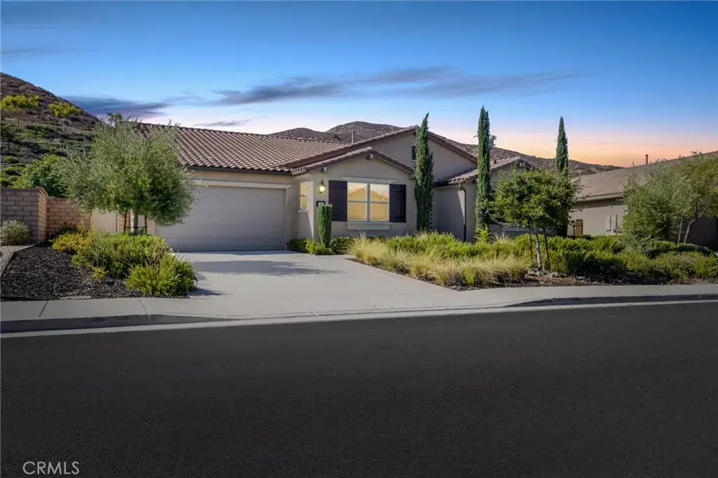 Welcome to Ponderosa Lane where dreams come true in this stunning 3100 sqft property sitting on almost a 14,000 sqft lot of land. The ranch style property features 4 bedrooms, 4 baths and a next-gen suite perfect for guests or income purposes. Located in the highly desirable gated community of Province in Audie Murphy Ranch, in Menifee, with mountain views, drought tolerant landscaping and nestled on the hillside with no rear neighbors. As you enter the home you are greeted by tall ceilings, recessed lighting, LVP floors, and a highly desirable floor plan. On the West wing of the ranch style property are two large secondary bedrooms both with walk-in closets, plush carpet, ceiling fans and tons of natural light flooding the space. The rooms share a secondary bath appointed with a dual vanity, quartz counters, and tub shower combo. Across the hall is a powder bath perfect for guests. Off the East wing of the home is the next-gen suite or Junior suite boasting a large room that can be split into a bedroom and living area or can be used as a large office or gym and offers a nook perfect for an exterior door to be built for private access. The bedroom has its own walk-in closet and attached bath featuring a single vanity and real tile walk-in shower. The amazing Great Room is appointed with large windows allowing tons of natural light to fill the entirety of the home, two ceiling fans and a massive space to decorate your dream living area. Off the Great Room is a large dining area that peers into the gourmet kitchen. The kitchen is appointed with granite counters, subway tile backsplash, stainless steel appliances, tons of storage with pull out drawers in the cabinets, and an eat up island. A flex space is the perfect office directly behind the kitchen and flows into a custom-built butler’s pantry and walk-in pantry. The large laundry room features a wash sink, the RO water filtration system and access to the 3-car tandem garage. The custom backyard boasts a $75,000 landscape design featuring an enclosed sun run patio cover with screens to allow airflow and doors to the rest of the yard which is appointed with pavers, and tons of fruit trees including Pomegranate, lemon, lime, grapefruit, avocado, and fig. The side yard is the perfect size for a pool! The community includes pools, spa, sports courts, club house, skate park, hiking and biking trails, and the award winning Taawila ES and new Kathryn Newport MS. Located between the 15 and 215 freeways!