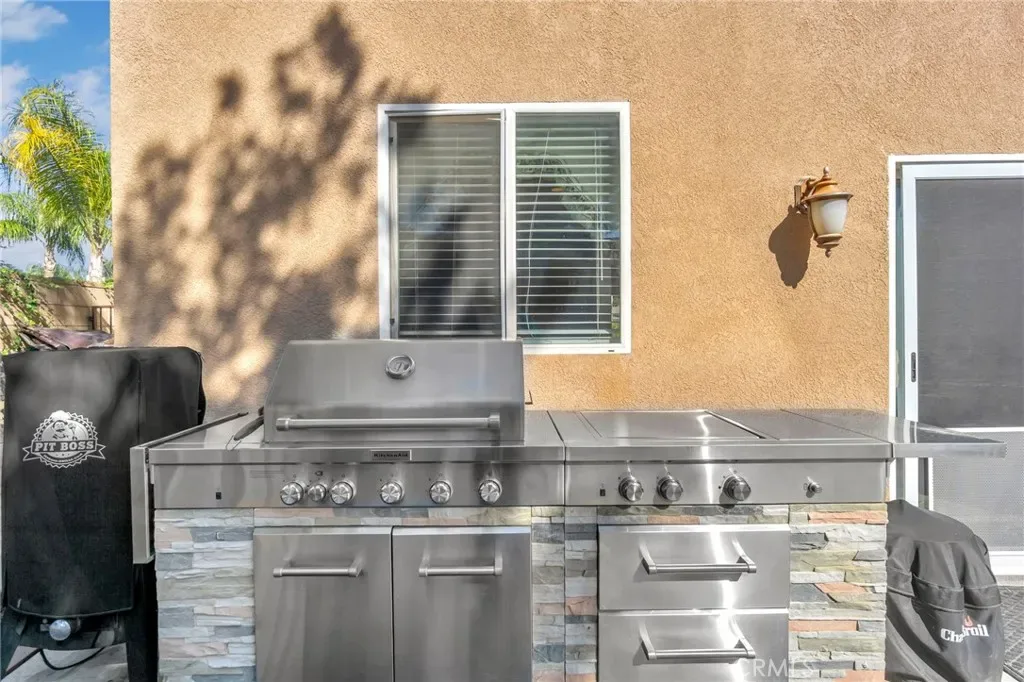 Step outside to a true entertainer’s backyard, complete with a built-in BBQ kitchen with gas hookup option, full evening lighting, shade screens, and a smart irrigation system to keep everything pristine.