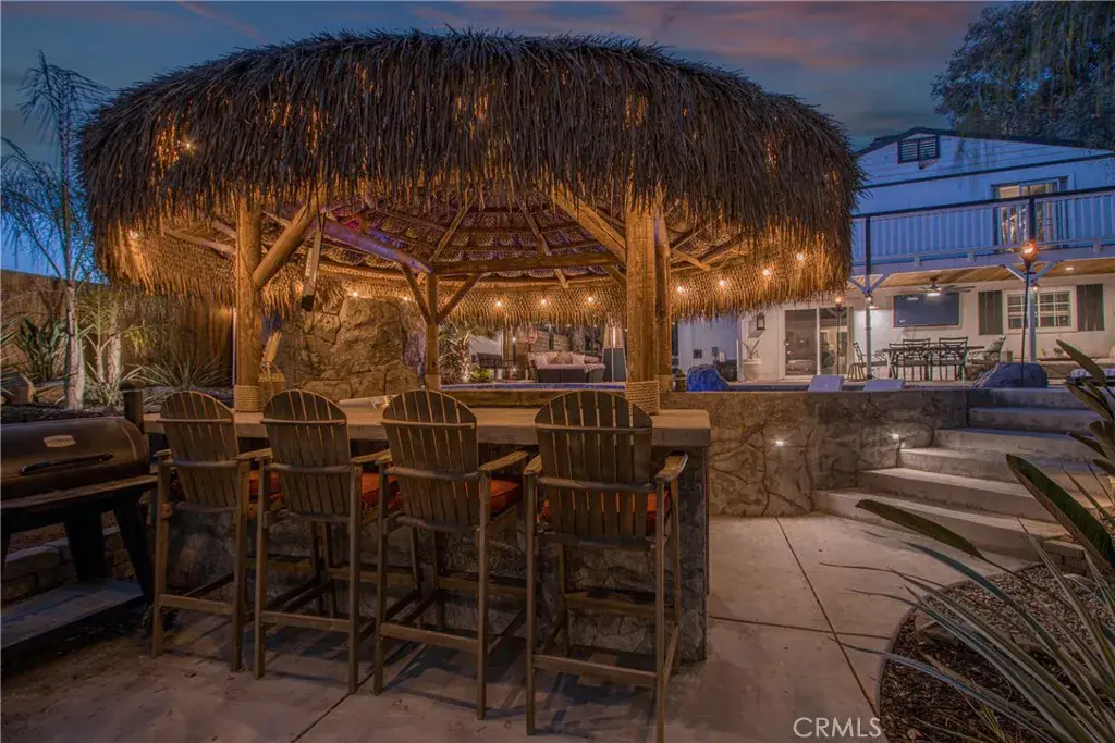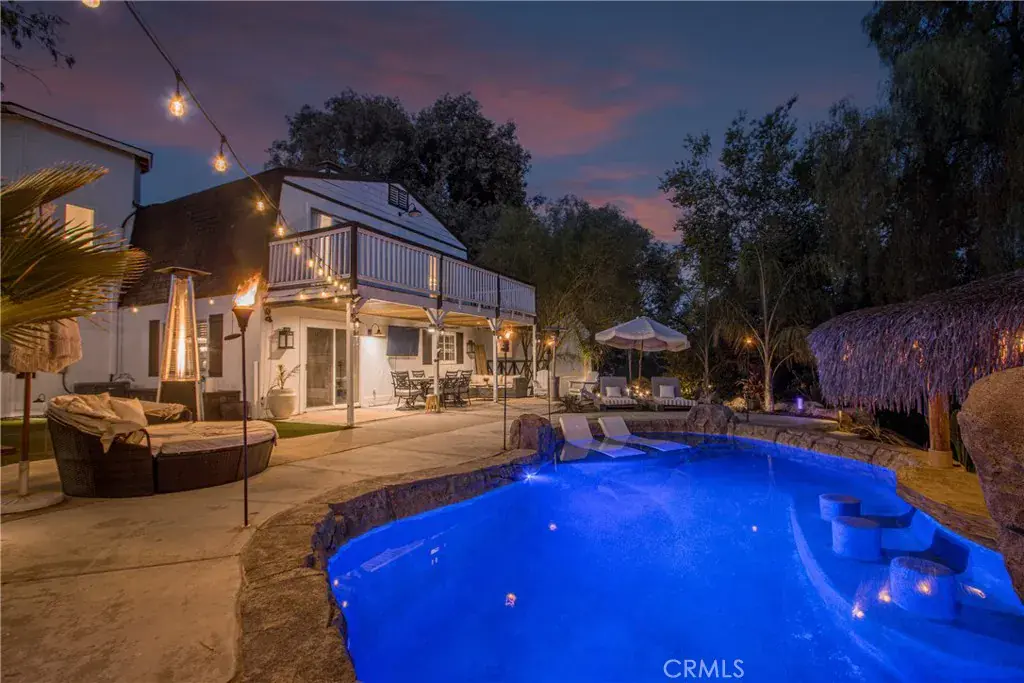 Outdoors, discover your own tropical resort-style retreat complete with a resort pool featuring a custom grotto waterfall with a three-person bench built into natural rock, in-pool barstools, a sunken bar, and both solar and heat-pump heating systems for year-round enjoyment. Just steps away, a detached shed offers endless possibilities as a pool house, entertainer’s lounge, or workshop.