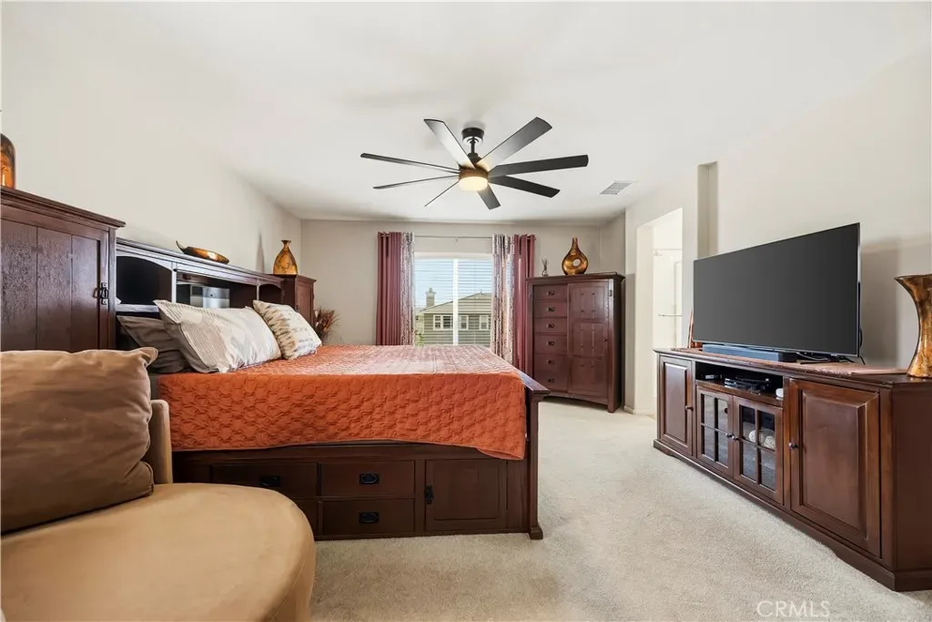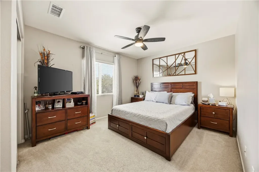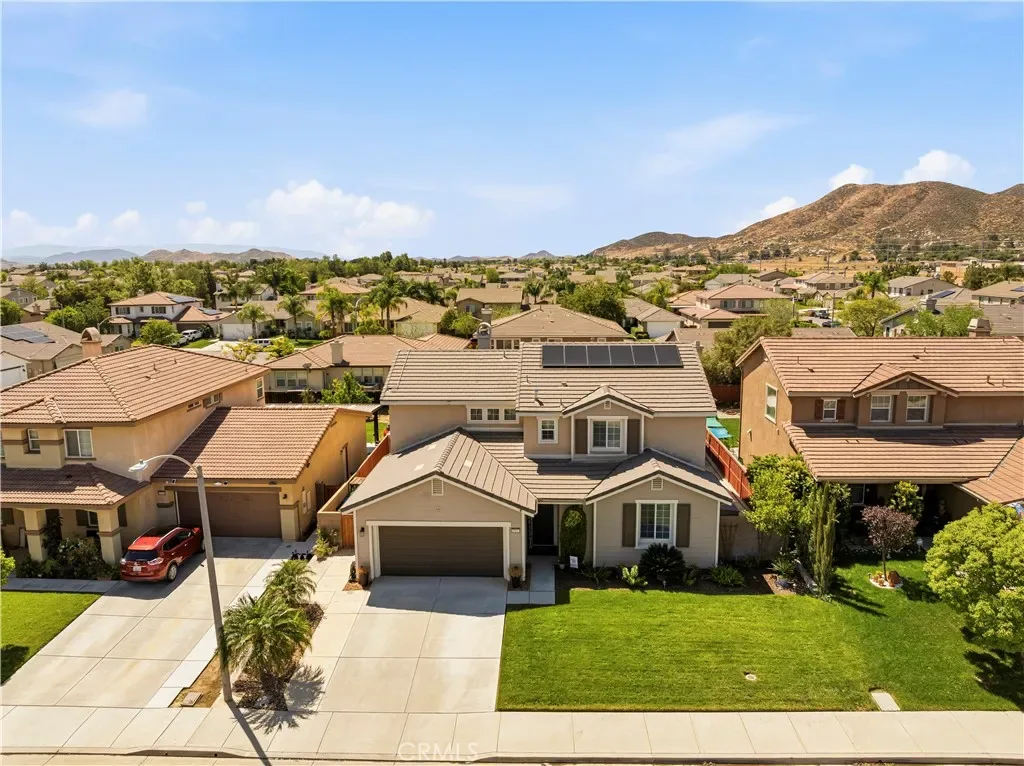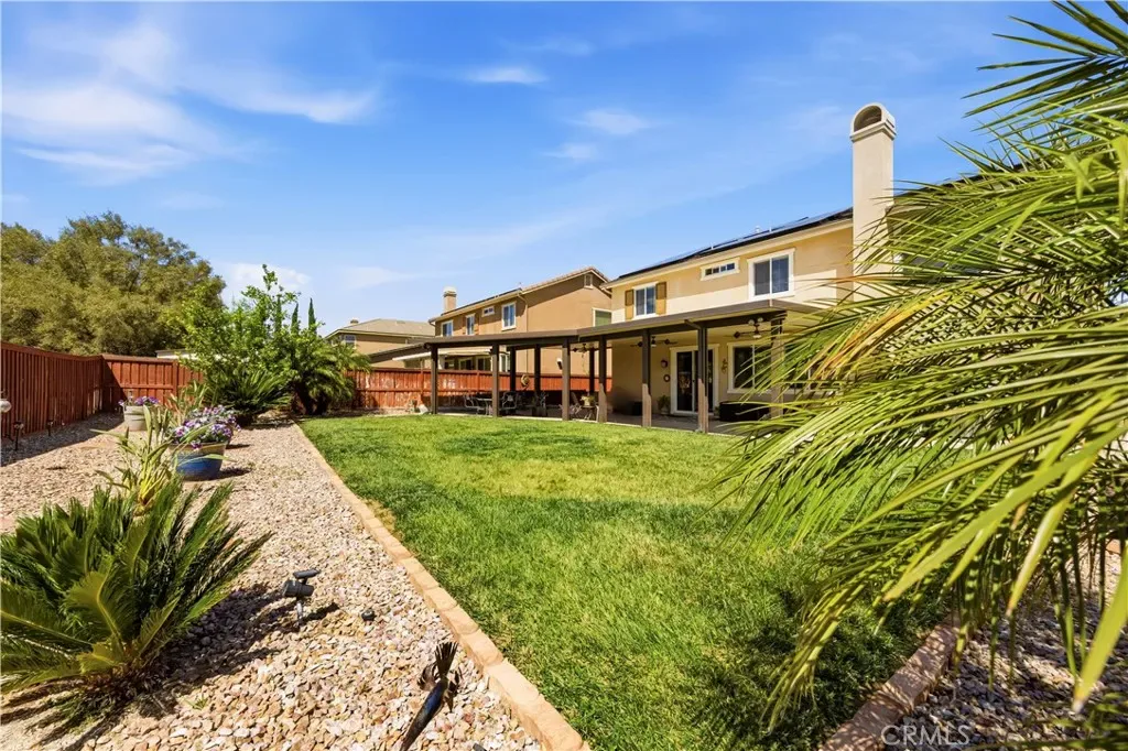 **Assumable VA loan at 3.0% for qualified buyers** Welcome to a rare opportunity to own a piece of Menifee’s finest, offered for the very first time by its original owners. From the moment you pull up to this meticulously maintained Lennar home, the pride of ownership is unmistakable. Built in 2009 and kept in pristine condition, this residence offers a level of care and detail that only a single-owner history can provide. Step through the front door and experience a spacious, light-filled layout that perfectly balances comfort and functionality. With five generous bedrooms and three full bathrooms, the interior provides an abundance of space to live, work, and retreat. One bedroom is located at the primary floor, with a Murphy bed and corner desk with a full bathroom, for your in-laws or guests. This home has been thoughtfully enhanced with fresh paint; The entire second floor and the expansive 3-car garage have been recently repainted. Modern Lighting & Comfort; The home is illuminated with plenty of LED recessed lighting and features upgraded ceiling fans in every room. The open-concept design flows seamlessly from the inviting living areas to the kitchen, showcasing the classic Lennar quality. The story continues outside, where the property truly sets itself apart. Situated on an expansive, flat lot with increased spacing between neighbors, the backyard serves as a massive blank canvas for your vision—be it a pool, an outdoor kitchen, or a lush garden. Existing outdoor highlights include: An ample patio cover and a wraparound concrete belt offer easy access and the perfect setting for hosting. Upgraded HVAC: Enjoy total peace of mind with an exterior HVAC unit that was replaced and upgraded in January 2021. Sustainable Energy: An energy-efficient leased solar system is already in place to provide predictable, low energy costs.The Community: Unbeatable Value Located on the quiet and desirable N Bay Lane, this home offers more than just a beautiful structure; it offers a lifestyle. The community features: Minimal Fees, Maximum Amenities: Boasting what is arguably the smallest monthly HOA fee in the entire Inland Empire, you still receive premium perks. Recreation: Residents enjoy a splash pad for the kids, a brand-new basketball court, and exclusive lake access (available with permit and proof of residency at no additional fee), plus 2 pools, a clubhouse with a full kitchen, hiking trails, and more.