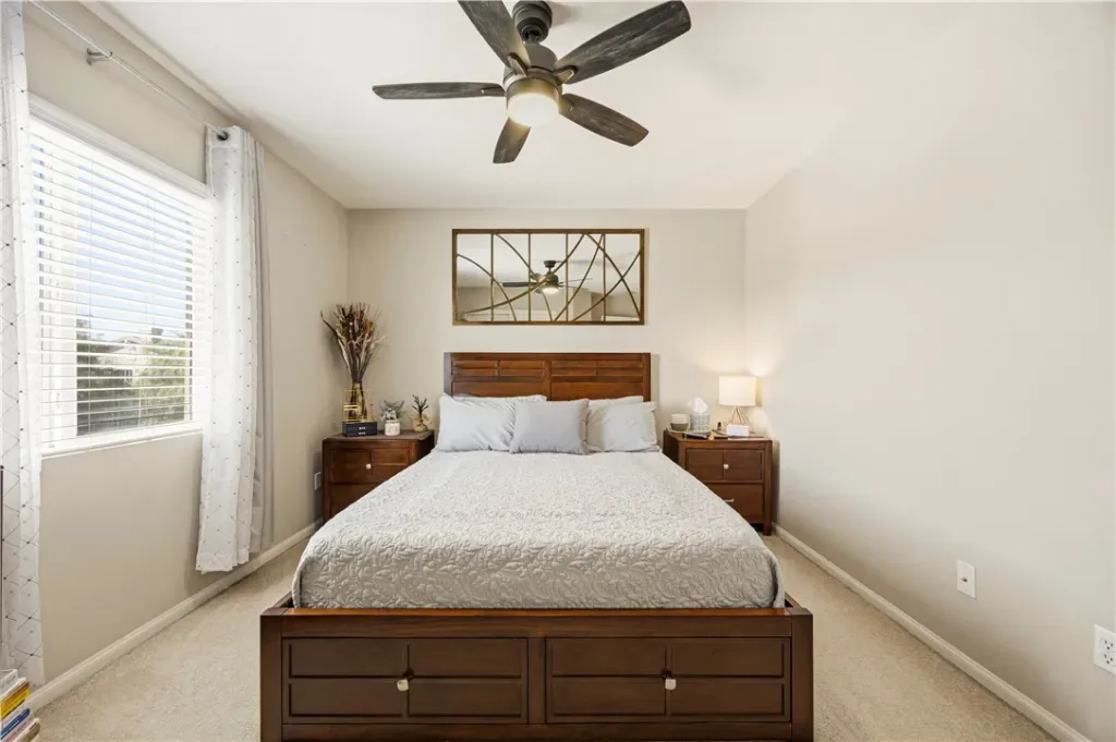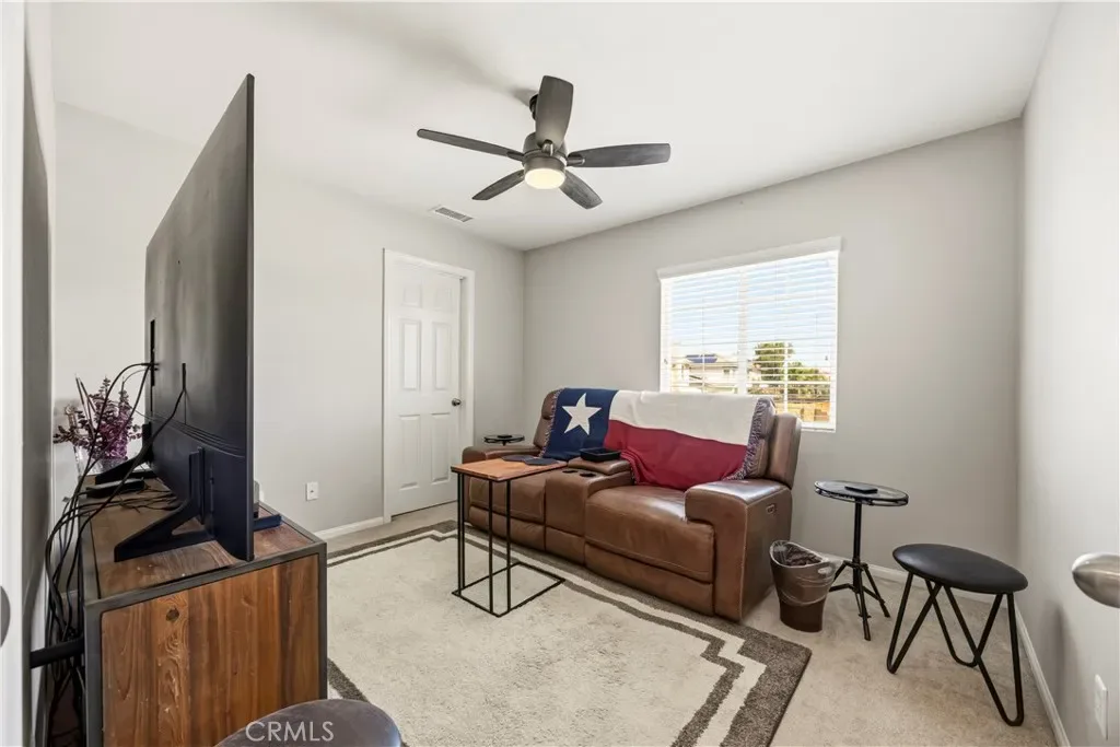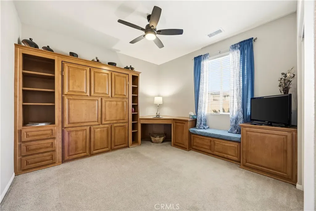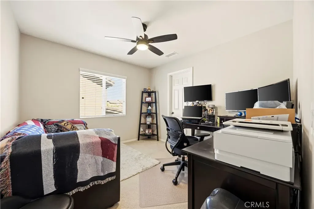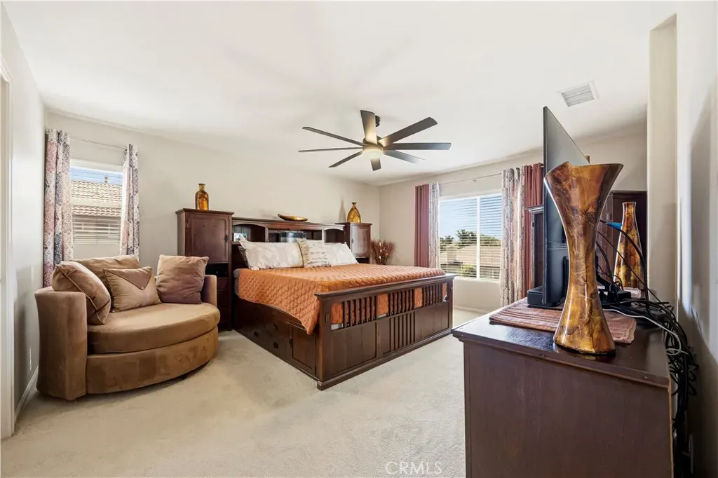 **Assumable VA loan at 3.0% for qualified buyers** Welcome to a rare opportunity to own a piece of Menifee’s finest, offered for the very first time by its original owners. From the moment you pull up to this meticulously maintained Lennar home, the pride of ownership is unmistakable. Built in 2009 and kept in pristine condition, this residence offers a level of care and detail that only a single-owner history can provide. Step through the front door and experience a spacious, light-filled layout that perfectly balances comfort and functionality. With five generous bedrooms and three full bathrooms, the interior provides an abundance of space to live, work, and retreat. One bedroom is located at the primary floor, with a Murphy bed and corner desk with a full bathroom, for your in-laws or guests. This home has been thoughtfully enhanced with fresh paint; The entire second floor and the expansive 3-car garage have been recently repainted. Modern Lighting & Comfort; The home is illuminated with plenty of LED recessed lighting and features upgraded ceiling fans in every room. The open-concept design flows seamlessly from the inviting living areas to the kitchen, showcasing the classic Lennar quality. The story continues outside, where the property truly sets itself apart. Situated on an expansive, flat lot with increased spacing between neighbors, the backyard serves as a massive blank canvas for your vision—be it a pool, an outdoor kitchen, or a lush garden. Existing outdoor highlights include: An ample patio cover and a wraparound concrete belt offer easy access and the perfect setting for hosting. Upgraded HVAC: Enjoy total peace of mind with an exterior HVAC unit that was replaced and upgraded in January 2021. Sustainable Energy: An energy-efficient leased solar system is already in place to provide predictable, low energy costs.The Community: Unbeatable Value Located on the quiet and desirable N Bay Lane, this home offers more than just a beautiful structure; it offers a lifestyle. The community features: Minimal Fees, Maximum Amenities: Boasting what is arguably the smallest monthly HOA fee in the entire Inland Empire, you still receive premium perks. Recreation: Residents enjoy a splash pad for the kids, a brand-new basketball court, and exclusive lake access (available with permit and proof of residency at no additional fee), plus 2 pools, a clubhouse with a full kitchen, hiking trails, and more.