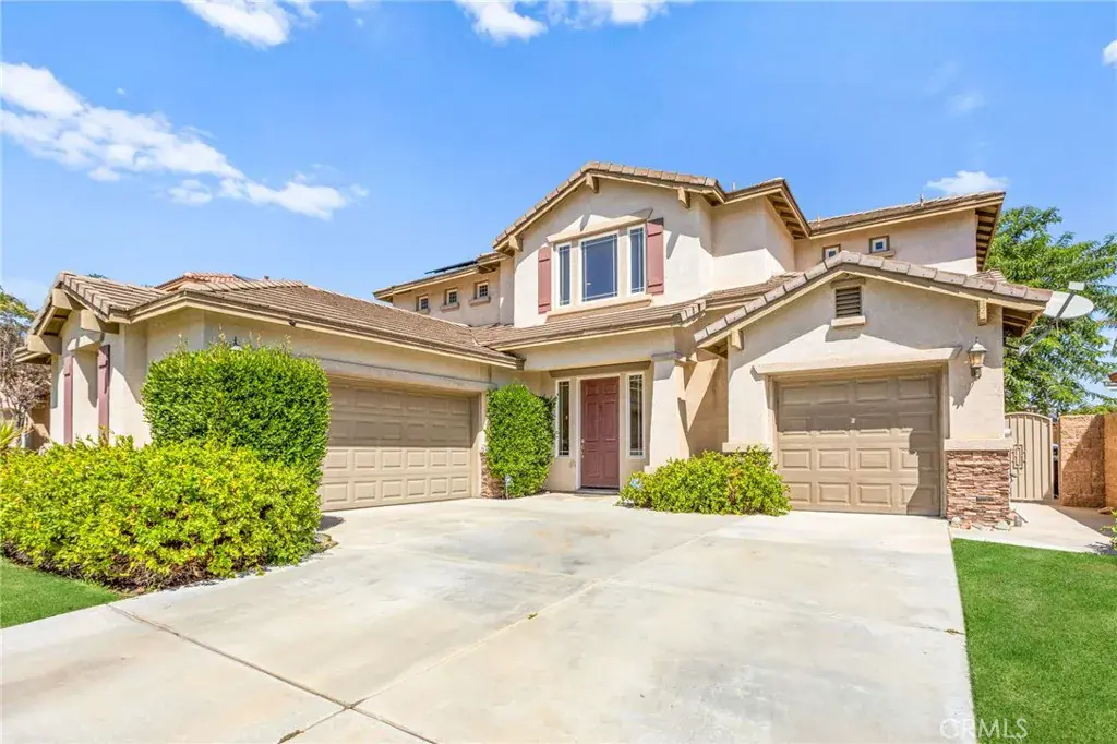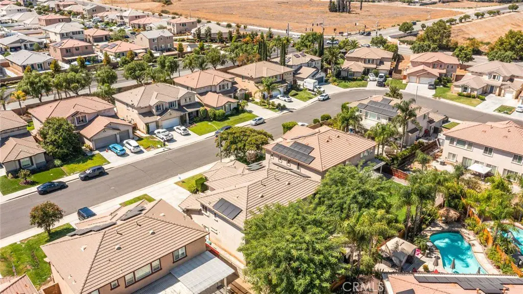 Stunning Custom Two-Story Home in Menifee, just minutes from freeways, shopping, schools, and more! This barely 4 bed, 3 bath , Big loft , is fully upgraded with premium features, including one bedroom and full bathroom downstairs, granite countertops throughout, vaulted ceilings, crown molding, custom wood flooring, built-in cabinetry, stainless steel appliances, and mature, professionally landscaped grounds. The gourmet kitchen is a chef’s dream, boasting a double oven, expansive walk-in pantry, abundant counter space, and a large island perfect for dining and socializing. The open, spacious floor plan with soaring ceilings offers both privacy and ample room for entertaining. The front and back yards are fully landscaped with custom concrete work, tall mature trees, and elegant flagstone masonry. The private, relaxing backyard features a gas firepit, built-in BBQ, and a raised gazebo, ideal for outdoor enjoyment. Additional highlights include a 3-car garage with plenty of parking and storage, plus a large driveway for extra vehicles, downstairs bedroom and lease solar panels. Nestled in a quiet community, this home is seconds from all essential amenities. Don’t miss out—this gem won’t last long! Schedule your viewing today!