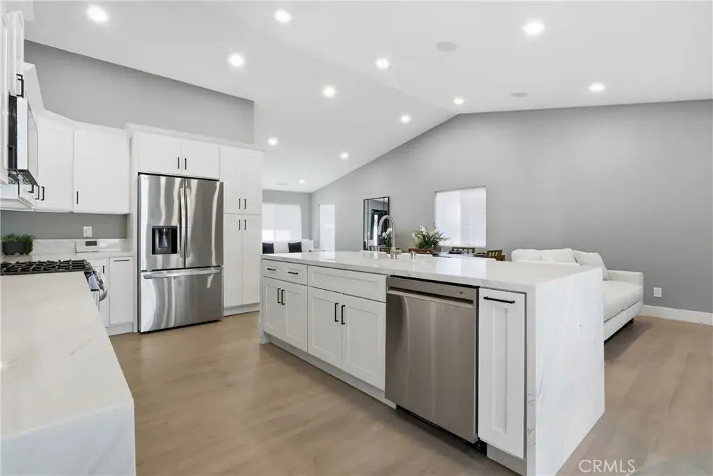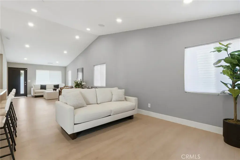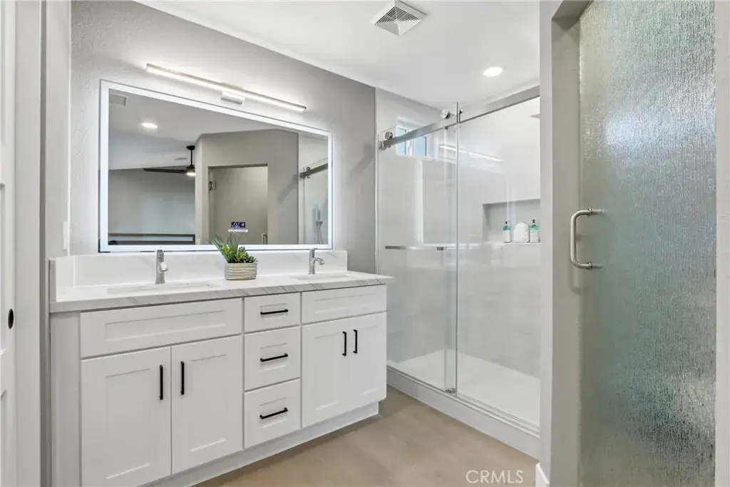 The front yard was recently redesigned with new grass and new river rock design with seasonal plants. This home has new flooring and new kitchen cabinets and all new bathroom vanities; bathroom upgrades include Smart mirrors with lights and blue tooth speakers integrated. New toilets, new vanities with quartz countertops, new tiles and enclosed glass shower doors. The new kitchen includes white shaker cabinets with quartz waterfall island. The Living room has a beautiful tile design with an electric fireplace. Audio speakers in the family room and master bedroom pre wired to add more if desired to upgrade by the new owners. Video surveillance cameras with commercial grade DVR and too many more upgrades. There is plenty of ceiling lights and a ceiling fan in each room. The new front door completes the modern look on the exterior. The new glass garage door comes with a new motor and can be added to the smart home ready features to function remotely and paid solar panels.