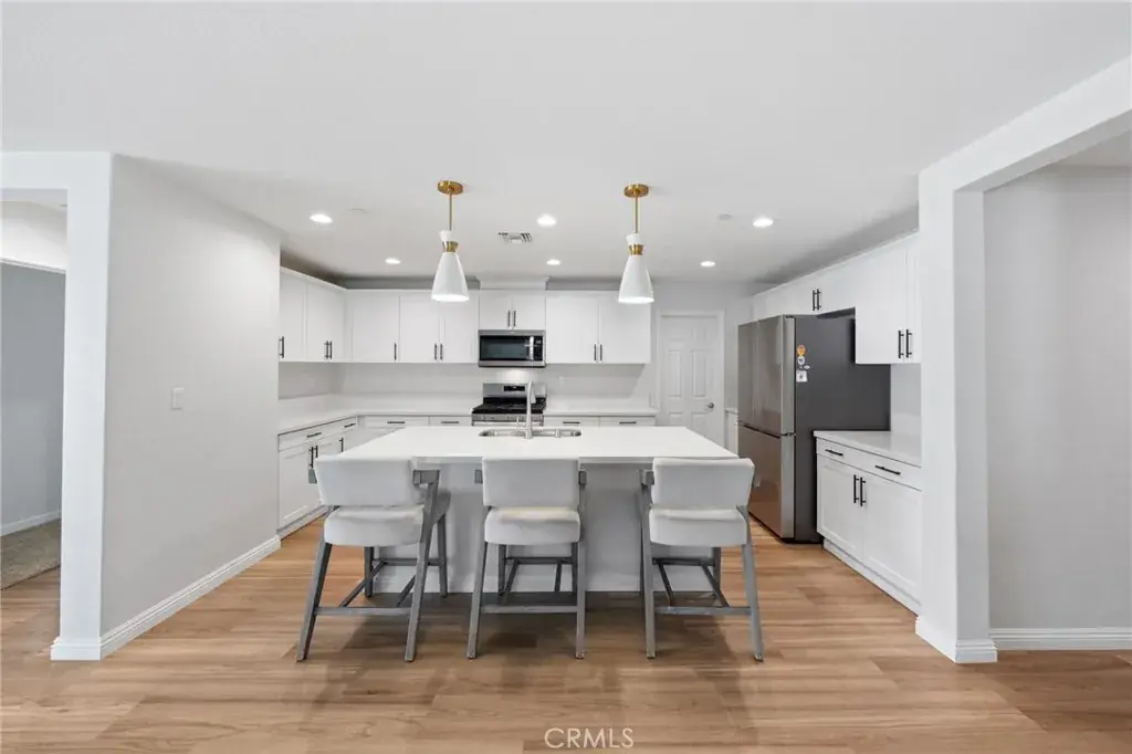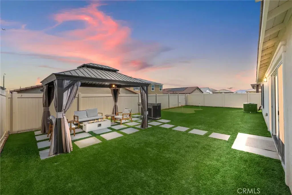 Seller is offering a $10,000 credit toward buyer’s closing costs and/or rate buy-down. Better than New! Welcome to this rare single-story gem featuring 4 bedrooms, 2 baths with over 2,000 sq. ft. of beautifully updated living space. The large open-concept living, dining, and kitchen areas flow seamlessly together, highlighted by fresh 2024 LVP flooring, recessed lighting, plantation shutters, and a double sliding glass door that floods the home with natural light. The modern kitchen boasts crisp white shaker cabinets, sleek white quartz counters, a gas stove, wine fridge, and plenty of space for cooking and entertaining. Step outside to your private backyard oasis with low-maintenance turf, lattice-style concrete pavers, vinyl fencing, and an aluminum gazebo—perfect for relaxing or hosting guests. Additional features include an alarm system, tankless water heater, drought-tolerant landscaping, and fresh paint. Just steps from a giant park, this home offers the perfect blend of comfort, style, and location