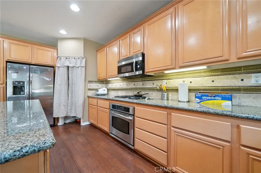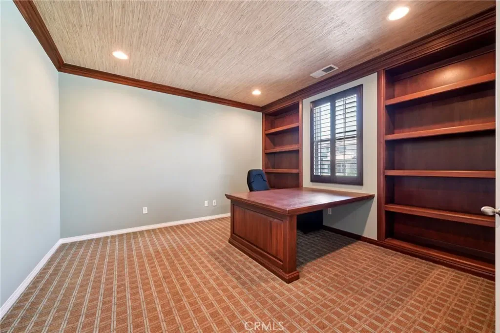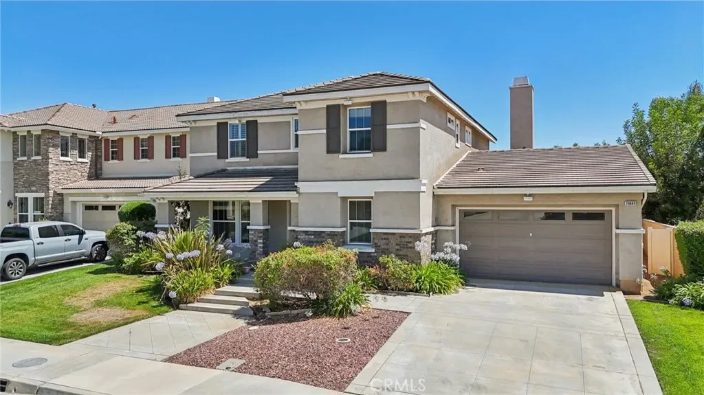 TRULY A MUST-SEE! Stunning former Beazer model home featuring 3,351 sq. ft., 4 bedrooms, 4 bathrooms, and a private office, situated on a pool-sized lot with a 3-car tandem garage. This home has designer upgrades, including custom paint, elegant window treatments, and upgraded flooring. Step inside to find beautiful wood flooring, custom-designed tile, and crown molding in the dining and living rooms. Designer area rugs are included with the home. The spacious great room with a cozy fireplace flows seamlessly into the gourmet kitchen, complete with granite slab countertops, custom tile backsplash, a large center island with seating, GE stainless steel appliances, a writing desk, and a walk-in pantry. The downstairs library features crown molding, custom-built-in desks, bookshelves, designer carpeting, and plantation shutters. The laundry room, also downstairs, offers ample cabinetry, Corian countertops, and a sink. Upstairs, all bedrooms have their unique designer touches, including custom carpeting and stylish finishes. Each bathroom features tile flooring and Corian countertops. The luxurious primary suite boasts crown molding, ceiling fans, custom wallpaper, a private deck, dual sinks, upgraded countertops, wood shutters, and a large walk-in closet. The backyard is perfect for entertaining with a concrete patio, covered seating area, and built-in BBQ—ideal for summer gatherings! Located in a fast-growing city, this home is your chance to own a beautifully upgraded property in a prime area. Don’t miss the opportunity to make this your forever home!