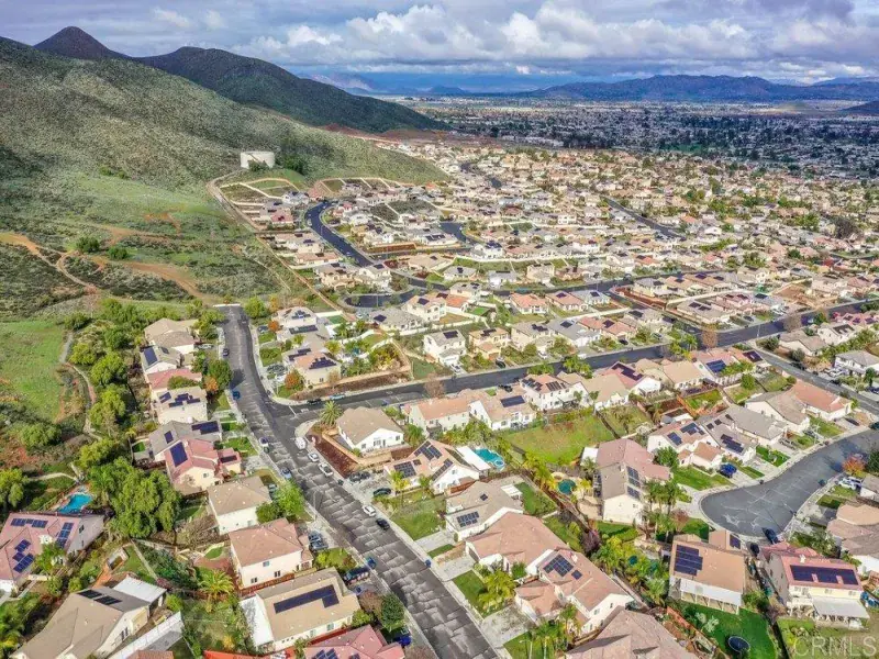 Menifee Living at Its Finest! Enjoy breathtaking panoramic mountain views from this beautifully maintained home, perfectly situated on a quiet street with no neighbors behind.The oversized living room is ideal for entertaining, featuring a stunning tile fireplace and built-in media niche, and seamlessly opens to a private, low-maintenance backyard. Relax or host guests under the charming gazebo while enjoying unmatched privacy. The spacious kitchen offers abundant storage, a newer stove, and a cozy breakfast nook complete with a window seat—perfect for reading or morning coffee. The large primary suite is a true retreat, showcasing a full bathroom with a soaking tub, walk-in shower, and an expansive walk-in closet. Additional highlights include an indoor laundry room with ample storage and a full-size washer and dryer included. The home features Arched doorways, a charging station in garage for electric vehicle, newer HVAC system installed in 2023, a Nest thermostat, a home security system that includes outside cameras around the house and a ring camera for added security, and solar for added efficiency. The beautifully landscaped front yard boasts low-maintenance synthetic turf. Conveniently located near schools, Roy W. Kabian Memorial Park, and Canyon Lake, this home offers comfort, privacy, and an exceptional lifestyle.