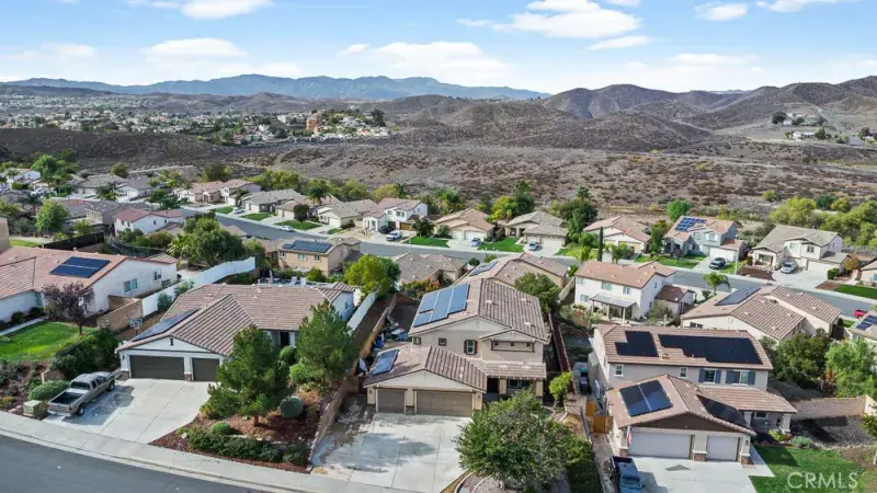 Beautiful 4-Bedroom Home with 33 Solar Panels in Highly Desirable Canyon Heights! Welcome to this stunning two-story home, perfectly situated on a quiet cul-de-sac in the sought-after Canyon Heights community of Menifee. Boasting 2,883 sq ft of thoughtfully designed living space on an 8,276 sq ft lot, this home offers 4 bedrooms, a main-floor bonus room that can easily serve as a 5th bedroom, 2 full bathrooms and an half bathroom on the main level, and an upstairs loft—ideal for everyday comfort and versatile living. This property features a fully paid-off solar panel system, consisting of 33 high-efficiency panels approx. 350 watts each This impressive setup helps reduce monthly energy costs, supports environmentally friendly living, and enhances overall property value. The new owner will enjoy immediate energy benefits, long-term efficiency, and increased independence from rising utility rates. Step inside to an inviting open-concept layout where the spacious kitchen takes center stage. Featuring a large granite island, custom backsplash, abundant cabinetry, and generous prep space, this kitchen is perfect for the home chef and effortless entertaining. The seamless flow into the living and dining areas creates a warm, connected environment for gatherings of any size. The curb appeal is exceptional, highlighted by a beautifully landscaped front yard and a 3-car garage with enhanced functionality. One single-car bay has been enclosed for additional usable space and includes a 240-V EV charger—a valuable upgrade for electric vehicle owners. The backyard is large, private, and flat, with no rear neighbors and peaceful neighborhood views—an ideal outdoor space for relaxation, entertaining, or future customization such as a pool, outdoor kitchen, or garden. Located within walking distance to Quail Valley Elementary School, this move-in-ready home is perfect for families. Canyon Heights is a well-established community of only 394 homes, known for its low taxes, quiet atmosphere, and strong pride of ownership. Don’t miss this rare opportunity to own a highly upgraded home with PAID-OFF solar in one of Menifee’s most desirable neighborhoods!