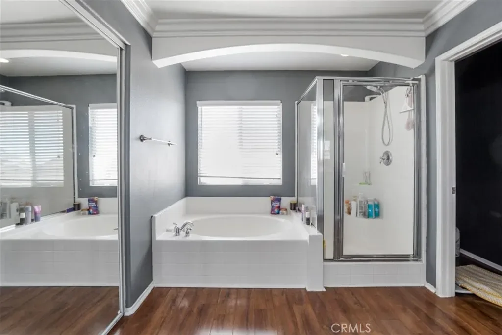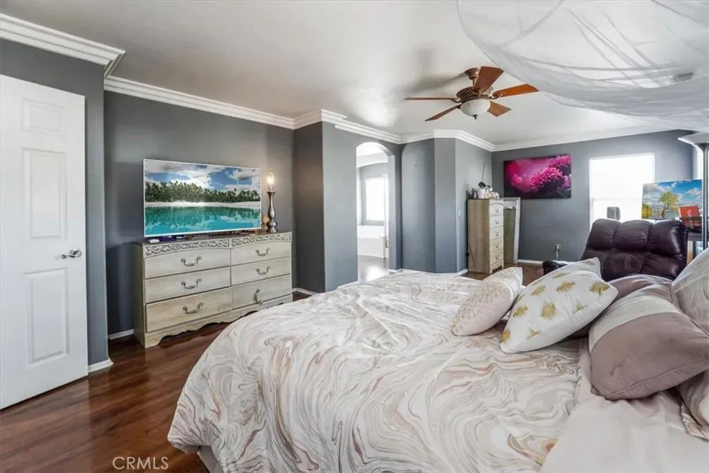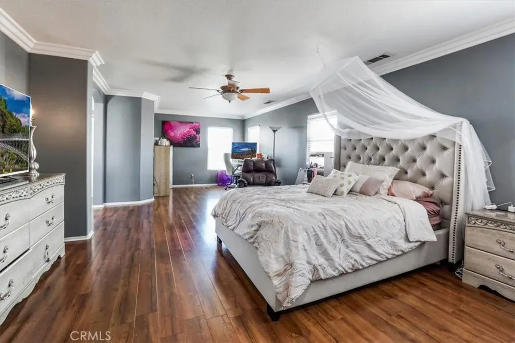 This home truly checks every box and then goes above and beyond. From the moment you walk in, you’re greeted with an open, airy layout designed for both comfort and style, highlighted by beautiful laminate flooring and elegant crown molding throughout. The heart of the home flows seamlessly into a spacious living area, perfect for entertaining or relaxing, while modern upgrades like a whole house fan and brand-new air conditioning units keep everything comfortable year-round. Step outside and you’ll find your own private retreat-complete with a covered back patio featuring ceiling fans, a relaxing spa, and mature fruit trees that bring both beauty and function to the space. The oversized main bedroom offers a true escape, with plenty of room to unwind, with a open bathroom suite that offers dual sinks, vanity area, soaking tub and walk-in shower. A large loft provides extra living space ideal for a game room, office, or additional lounge area. This home is also built for the future, featuring a 3-car garage equipped with a Tesla charging station and an additional EV charging setup. Water quality is top-tier with a whole house water softener and under-sink filtration system already in place. Every detail has been thoughtfully designed to combine luxury, efficiency, and everyday ease-making this not just a house, but a place you’ll love coming home to. Elementary and brand new Junior High within walking distance.