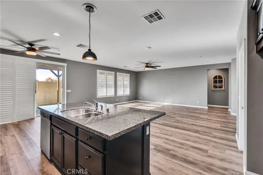 Welcome to this stunning 4 bed, 2 bath home in the highly sought after community of Audie Murphy Ranch! The home is situated on a corner lot. Designed for both style and function, this beautiful home is upgraded with plantation shutters, vinyl plank flooring, granite counter tops, a large granite island, a tankless water heater, and a covered patio. An open layout brings together the spacious living area and kitchen which is perfect for entertaining friends or relaxing with family. The rooms are generously sized which provides plenty of room for everyone! The solar energy system is leased and helps to keep costs down. Audie Murphy Ranch offers many amenities including pools, spas, hiking, outdoor exercise equipment, and much more!