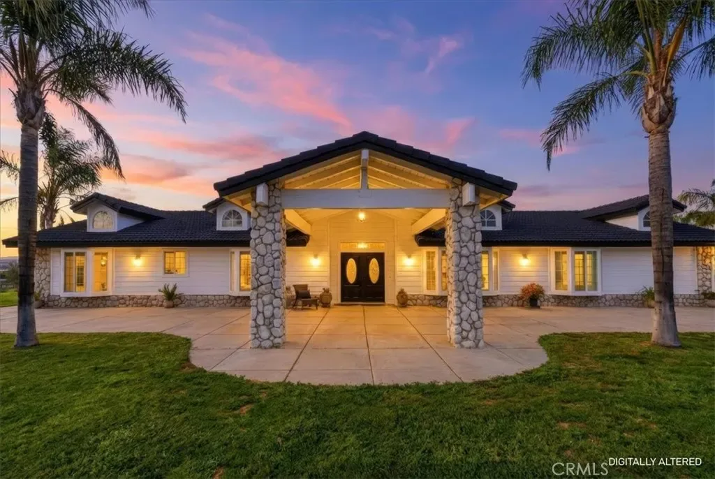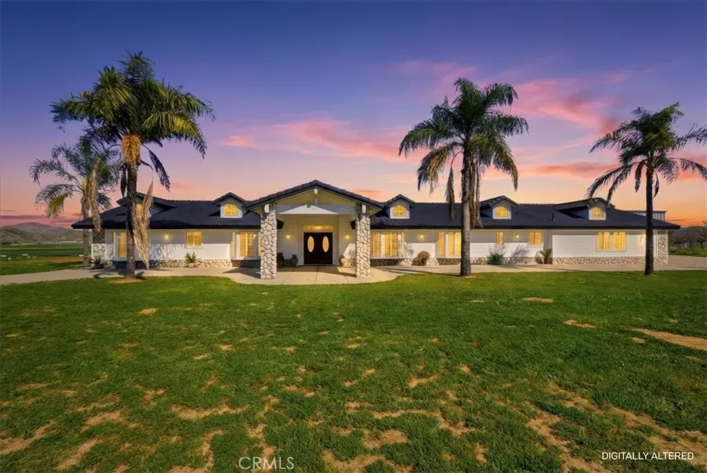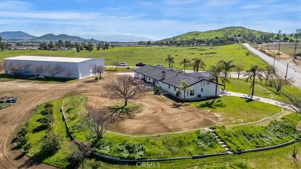 HUGE WAREHOUSE 7,200 SQFT ON 10 ACRES of land with a GORGEOUS CUSTOM BUILT HOME that has amazing views. RARE opportunity to own this property that has so much to offer. LIVE AND WORK OR PERFECT FOR HOBBYIST. It is gorgeous with an expansive open floor plan and perfect for a large family. Beautiful BRAND NEW TILE ROOF, BRAND NEW TILE WOOD-LIKE FLOORS and BRAND NEW INTERIOR AND EXTERIOR PAINT. 4 spacious bedrooms and 3.5 bathrooms allows for plenty of space and separation. The ENORMOUS kitchen features brand new stainless steel appliances such as double ovens, perfect for holiday cooking, a cooktop with a downdraft and new dishwasher. The kitchen overlooks the large family room where your whole family can enjoy and you can entertain for large gatherings. Living room features a rock fireplace with a heaterlator Quadra-fire-insert blower that will warm the whole house up and surround sound. One bedroom and full bathroom is on opposite side of the home, and the primary bedroom is oversized with a walk-in closet. The WORKSHOP IS MASSIVE with 7200 sqft (60×120 feet) and 2 14 foot high roll-up doors that you can drive SEMI TRUCK THRU! 2 additional 10 foot roll up doors as well. The workshop has reinforced extra thick stamped concrete perfect for parking a SEMI truck or heavy equipment. It was constructed to be a 2 story building (please see permits or city). This property is located in the County of Riverside and was rezoned recently for storage parking as well. Perfect way to make extra income. There are 5 entry ways to get on the property making a perfect space for separation if you run a business from the property. It is also horse property and would make a great ranch. The workshop is also built to make the workshop an indoor barn. Possible future development adds even more flexibility for this property. There are endless possibilities and usages for the new buyer. Septic system was just pumped and serviced and the propane was just filled.