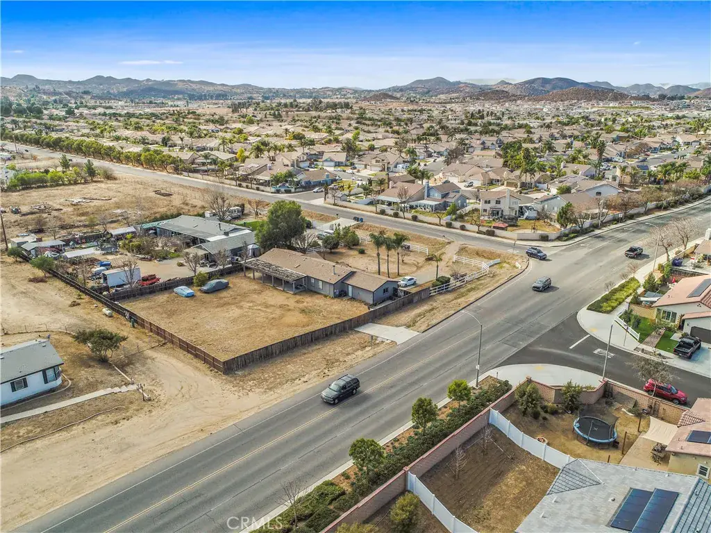 RARE OPPORTUNITY to own a .64 Acre corner lot in Menifee’s Designated Community Core and Economic Development Corridor. This property has development potential & Mixed Use potential with highly desirable frontage (236 Ft) on La Piedra Road, an extensively traveled West – East Thoroughfare that runs parallel with Newport Rd to the south of it. The traffic volume creates optimal conditions for High Visibility! This parcel has approved access on both Stern and La Piedra in addition to all utilities accessible (City Water, Electricity, Internet, Phone) on site and immediately adjacent to it is Sewer & Natural Gas in La Piedra Rd. Menifee’s Town Center is walking distance as well as several schools, shopping centers, parks and restaurants. The Menifee Justice center is within a few blocks of this property along with the future City Hall, Police Department, Central Park and existing Fairfield Inn. & Suites. This property would be an Ideal location for any business venture you can envision. Some examples with city approval might include: Court Services, Mediators, Law Firm, Paralegals, Commercial, Retail space with loft apartments above, Small individual businesses, strip center, industrial space or even an Assisted living facility. The possibilities are endless and only bound by your imagination and development parameters. BONUS! There is an existing 1,944 Sqft. 4 Bedroom + Den, 2 bath Manufactured Home on a 433A permanent Foundation built in 2002 with an oversized 2 car (20×24) attached garage! Remodeled in 2013, air conditioner and ducting new in 2020, upgraded pier and earthquake strapping system beneath home, fully privacy fenced backyard, recently painted exterior, automatic irrigation system in front, front landscaping, and front horse rail fencing. Don’t miss your chance to own such a unique property with so many options! Purchase to live in and run your home business, develop the property into your commercial/industrial/retail/residential vision or hold for investment! Great rental history! Buyer to verify all information. Do not disturb tenants! Surrounding properties 30525 Old Windmill rd, 30581 Old Windmill rd, 30620 Old Windmill rd, 30640 Old Windmill rd & 30645 Old Windmill rd are listed for sale as well.