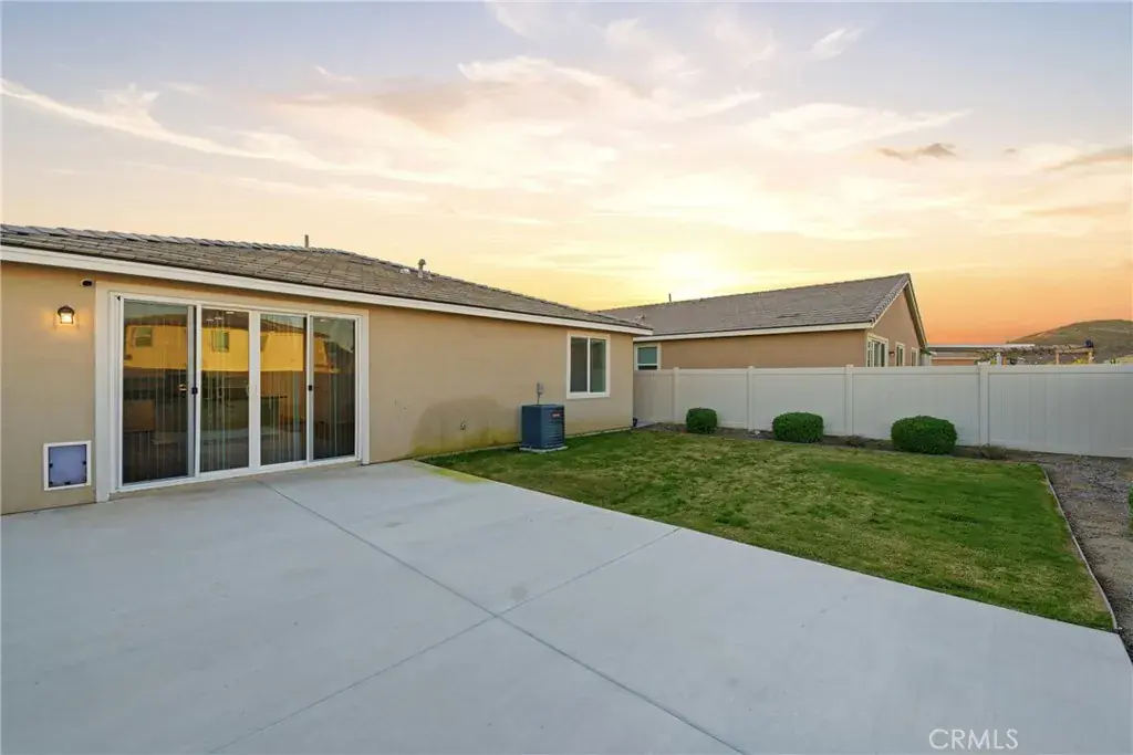 A separate laundry room adds to the home’s functional design. Sliding glass doors from the living area lead to a low-maintenance backyard offering endless possibilities, complete with a spacious grass area and a large concrete patio—perfect for entertaining, play, or relaxation.