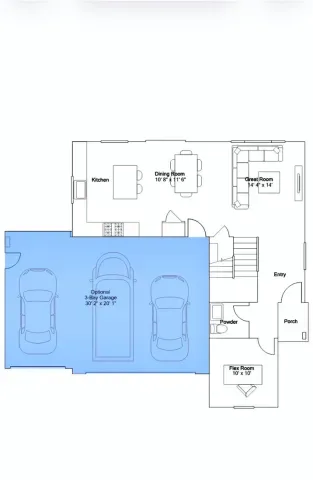 A versatile downstairs office/den offers the flexibility to function as a fourth bedroom, guest room, or private workspace, conveniently located near a half bathroom on the main floor.