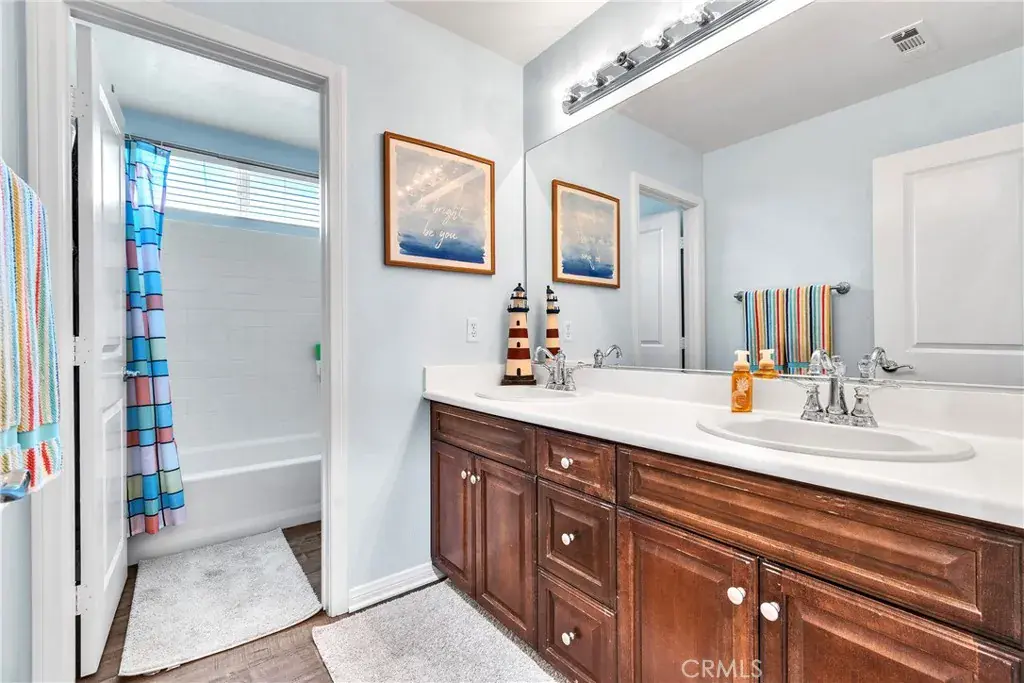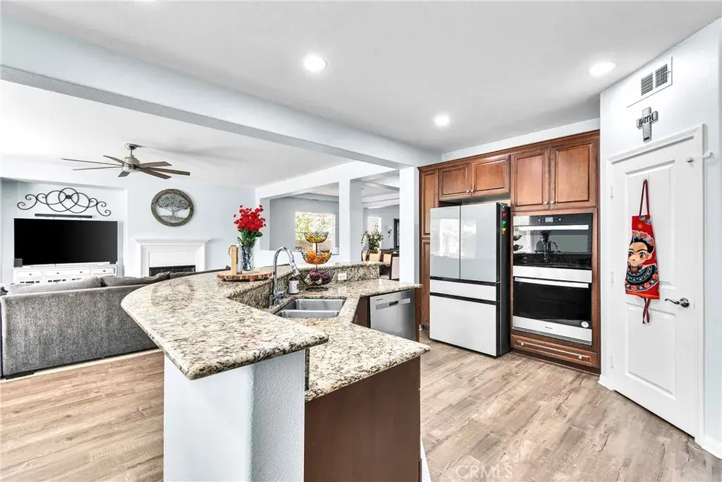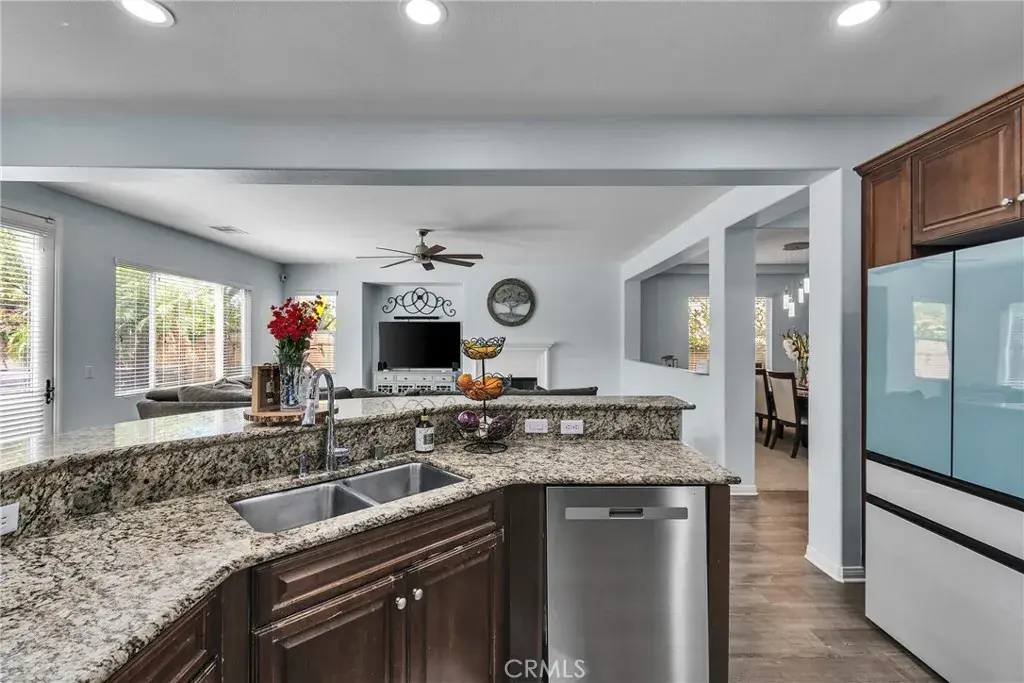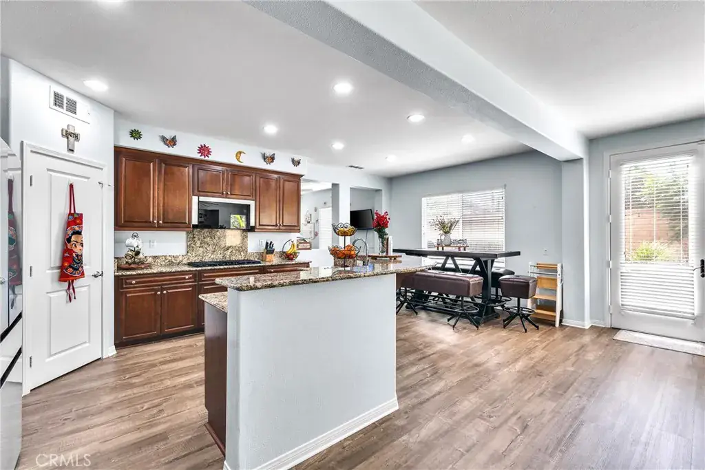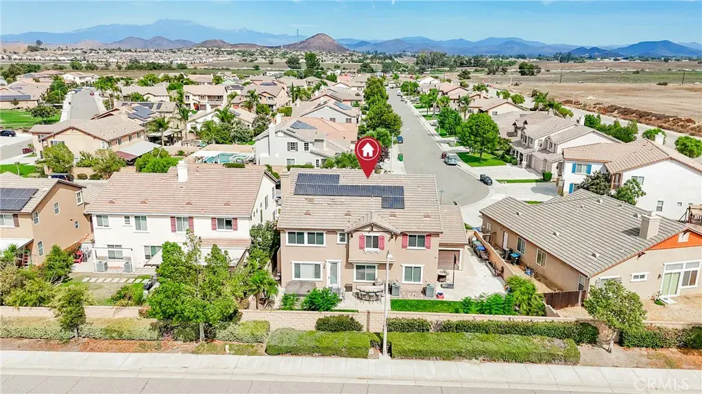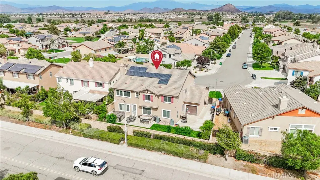 Welcome to this beautifully upgraded 5-bedroom, 4-bathroom home in the heart of Menifee, offering an expansive 3,800 sq ft of living space. Freshly painted inside and out with easy clean paint inside ideal for little artists and easy everyday maintenance, this home combines comfort, style, and functionality with thoughtful upgrades throughout. Step inside to find upgraded laminate flooring, upgraded ceiling fans, and all-new toilets in each of the four bathrooms. The kitchen is a chef’s dream, featuring new upgraded appliances to include a new microwave and new ovens equipped with air fryer. Enjoy the luxury of your own Jacuzzi, an outdoor kitchen, and a fully landscaped front and backyard—perfect for hosting or relaxing. The property is also equipped with solar panels for energy efficiency and smart security system and cameras throughout for added peace of mind. The HOA includes seasonal events like movie nights/Easter Egg Hunts, a walking trail and park with a playground as well as 24 hour security camera surveillance around the community. Seller is offering a 1/10 Temporary buydown credit for qualified offers.