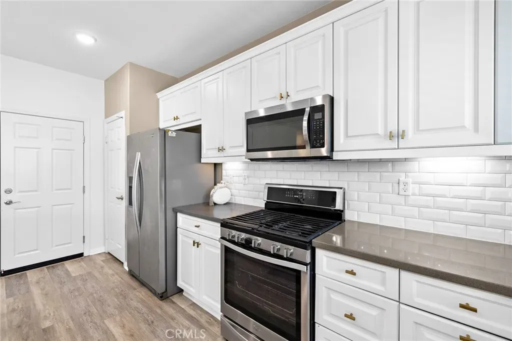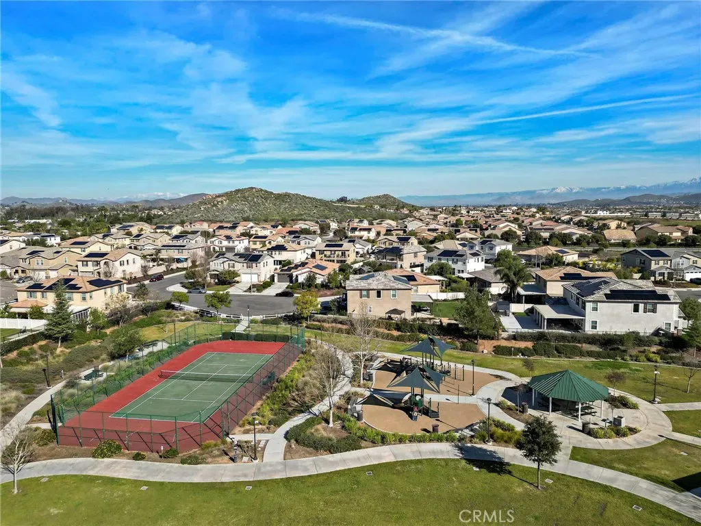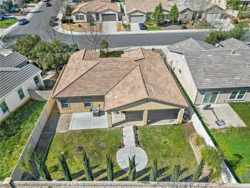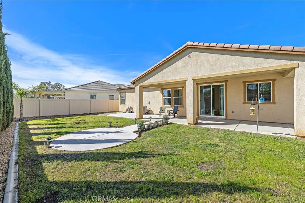 Welcome home to this beautifully upgraded single-story KB Cypress Home built in 2017, perfectly situated in the highly sought-after Hidden Hills community. Offering 3 spacious bedrooms, 2 bathrooms, and 1,430 square feet of thoughtfully designed living space, this home combines modern style with everyday comfort. As you enter you will be greeted with a warm and inviting entry that opens to a bright, airy great room. The open-concept layout is filled with natural light, creating the perfect space for both relaxing and entertaining. At the heart of the home, the stunning kitchen features a large center island ideal for cooking, casual dining, and gathering with family and friends. Upgraded with elegant gray quartz countertops, a classic white subway tile backsplash, stainless steel appliances, and modern fixtures, this kitchen is as beautiful as it is functional. The seamless flow continues with a sliding glass door that leads to a spacious, fully fenced backyard and an upgraded covered patio. Whether hosting weekend barbecues or creating your dream outdoor retreat, this private backyard offers endless possibilities. The generously sized primary suite provides a peaceful escape, complete with a walk-in closet, dual sinks, and a walk-in shower. Two additional bedrooms and a full bathroom with a tub/shower combo offer flexibility for family, guests, or a home office. Additional highlights include vinyl plank flooring throughout, modern finishes, an inside laundry room for convenience, and direct access to the two-car garage. The garage has been upgraded with Epoxy too! Enjoy all that Hidden Hills has to offer, with community amenities that include scenic walking trails, basketball and tennis courts, a soccer field, and a playground. Conveniently located near schools, shopping, dining, and with easy access to the 215 and 15 freeways, this home offers both comfort and convenience. Move in ready and thoughtfully designed, it is a wonderful opportunity for first time buyers or those looking to downsize. This single-story home is truly a must see!