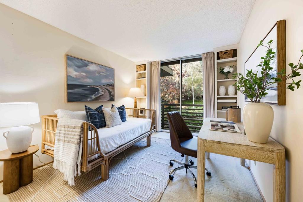 Discover comfort, privacy, and convenience in this beautifully updated 3-bed, 2-bath, 1,470 sq. ft. home located in the highly sought-after gated community of Sharon Heights. This light-filled unit features an open-concept living and dining area with floor-to-ceiling windows, creating a seamless connection to the surrounding greenery. The spacious kitchen offers plentiful storage and workspace, while the private balcony provides a serene outdoor retreat. The generous primary suite includes a large walk-in closet and an updated bath, complemented by two additional bedrooms ideal for guests, a home office, or flexible living. Community amenities include a pool, well-kept grounds, underground parking, and extra storage. Perfectly situated near Sharon Heights Shopping Center, Stanford University, top-rated schools, and easy access to 280, this home combines peaceful living with exceptional convenience.