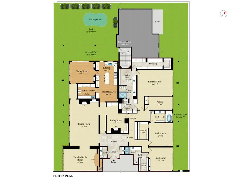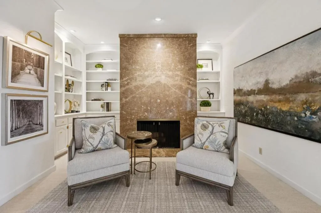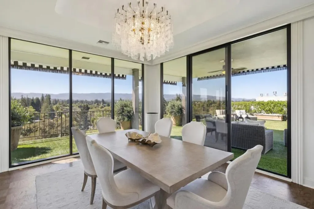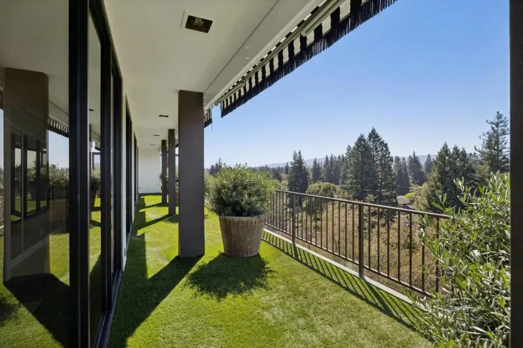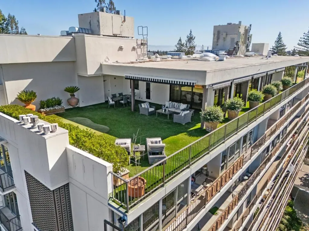 Positioned at the pinnacle of Menlo Towers in downtown Menlo Park, this rare penthouse is one of only two in the building, with neither trading in over 30 years. Offering approximately 4,880 square feet of single-level living plus more than 4,000 square feet of private exterior terraces, it delivers exceptional scale & privacy. Natural light fills the home through skylights & expansive windows, framing panoramic treetop & western hill views. A formal foyer opens to a grand living room with fireplace, elevated ceilings & sweeping outlooks. The dining room & main living spaces connect seamlessly to the terraces, creating effortless indoor-outdoor flow. The kitchen features a center island, casual dining area & walk-in pantry with wine refrigeration, while a separate media room adds flexibility. The private bedroom wing includes a spacious primary suite with remarkable views, a large bath & custom closets. Two additional en suite bedrooms, a den & office provide comfortable accommodations. Wraparound terraces define the residence, with turf lawn, putting green & multiple seating areas above the tree line. Menlo Towers is a secure environment with a staffed lobby, gym & pool. In the heart of downtown shops & restaurants, this is an exceptional residence of rare scale & distinction.