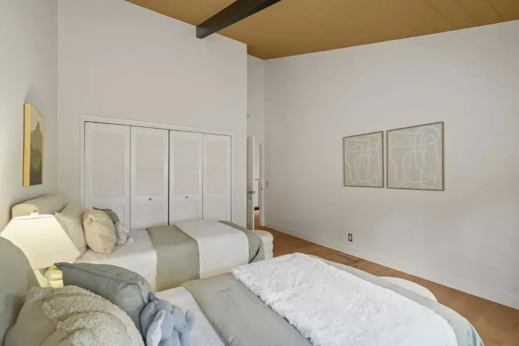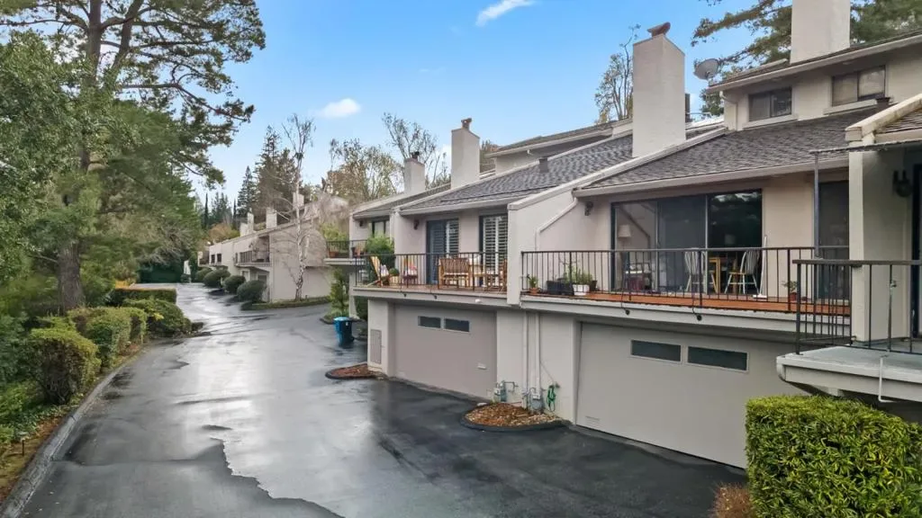Beautifully remodeled townhome showcasing contemporary style, soaring high-pitched ceilings, skylights, and expansive windows that flood the interior with natural light. Fresh interior paint and newly installed engineered hardwood floors create a crisp, modern aesthetic, complemented by smart-home upgrades including an EV charger, Lutron lighting system, MyQ garage door opener, and Ring doorbell. Enjoy serene views of Sharon Heights Golf Course and seamless indoor-outdoor living as the open living and dining areas, anchored by a fireplace, extend to a gracious private patio ideal for entertaining.The updated chefs kitchen features granite countertops, a dining bar, and top-quality stainless steel appliances, offering both style and functionality. Three generously sized bedrooms include a desirable ground-floor primary suite with remodeled en-suite bath and built-in cabinetry. A beautifully remodeled hall bath completes the two upstairs bedrooms. Additional highlights include central air conditioning, an oversized laundry/workroom, and an attached two-car garage. Ideally situated in a premier mid-Peninsula community with lush landscaped grounds and a community pool, this exceptional home offers convenient access to Stanford University, Sand Hill Road, and Highway 280.