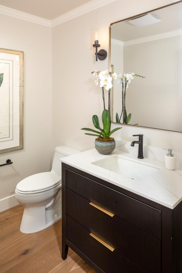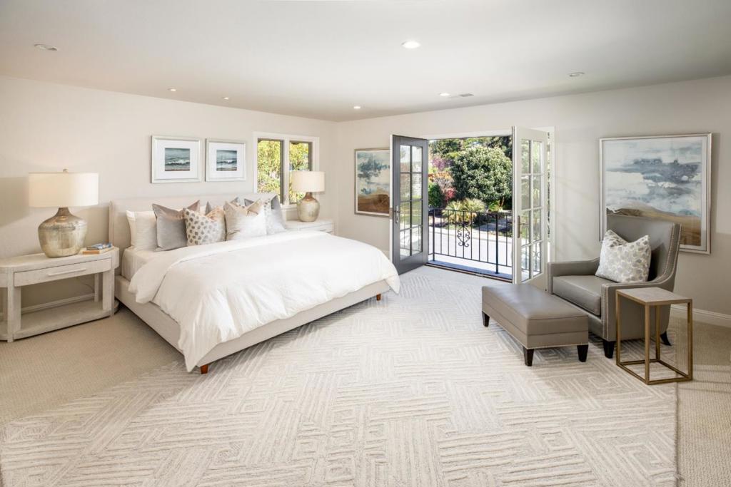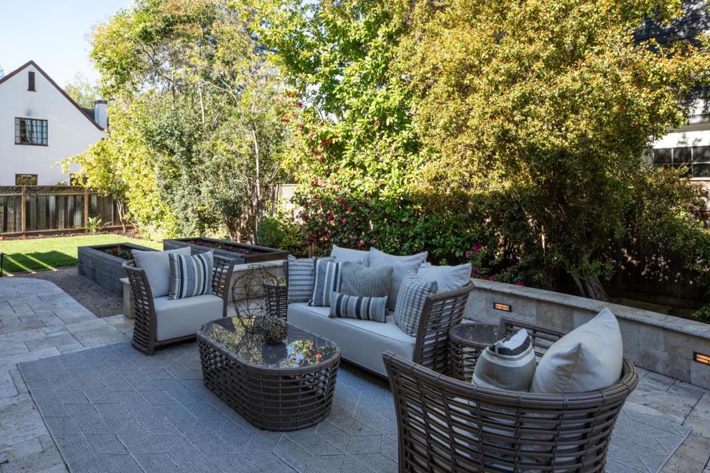 Gracefully set on a peaceful cul-de-sac, this magnificent Mediterranean-inspired residence blends timeless architecture with modern luxury in a coveted Menlo Park neighborhood. A dramatic foyer welcomes you with soaring ceilings, a sweeping curved staircase, arched windows, and a dazzling chandelier. Elegant living and dining rooms feature crown molding, arched openings, and doors opening to inviting patios. The stunning chefs kitchen boasts stainless steel appliances including a Thermador 6-burner cooktop & refrigerator, bay window, and a spacious island, flowing into an expansive family room with backyard access and a stylish bar. A versatile flex room with built-ins offers space for a study, office, or casual dining. The luxurious primary suite features French doors to a Juliette balcony and private terrace, plus a spa-inspired bath with soaking tub, large shower, heated floors, skylight, and walk-in closet. Beautifully landscaped grounds offer lush lawn, travertine patios, pergola with heaters, citrus and fig trees, and a play area. Additional highlights include a 3-car garage with Tesla charger, A/C, dual-zone heating, Sonos speakers, tankless water heater, and new hardwood floors. Ideally located near Sand Hill Road, Stanford, dining, Hwy 280 and outstanding schools!