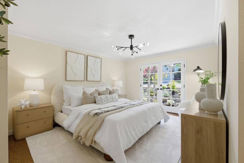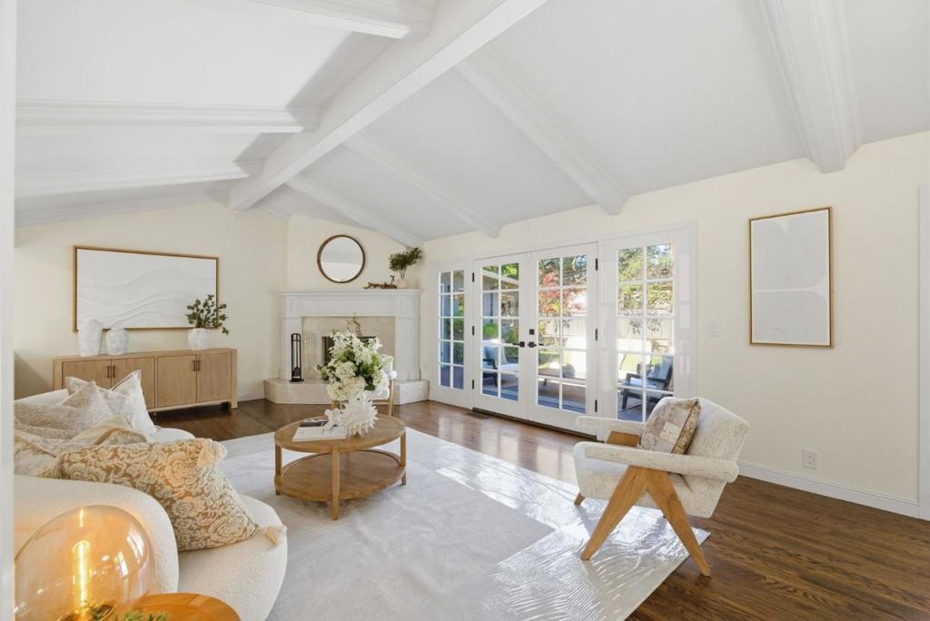 This exquisite ranch home is located on a quiet cul-de-sac in sought-after Sharon Heights, very close to Stanford, and provides the perfect blend of timeless elegance and peaceful living. Exquisite craftsmanship and quality finishes with random plank oak hardwood floors and crown molding throughout. At the heart of the home is the stunning great room featuring a woodburning fireplace with an ornate travertine and wood mantel, and a contemporary organic chandelier in the dining area. The exposed beams on the vaulted ceiling and the French doors to the back yard further the sophisticated design, which continues into the adjacent Chefs kitchen with coffered ceilings, stylish marbleized counter tops and white cabinets, a Thermador 5- burner cooktop, double ovens & stainless steel appliances. Separate bedroom wing including 3 generous guest bedrooms sharing the hallway bath with separate tub and shower, and a romantic primary retreat with French doors to the covered front porch, built-in vanity, marble counter tops, and multiple closets. Inside laundry. Attached 2-car garage. Very private, with expansive back deck and drought-resistant landscaping. Bike to schools, Stanford, and Sand Hill Road. Easy access to shopping & leading tech campuses. Award-winning Las Lomitas schools.