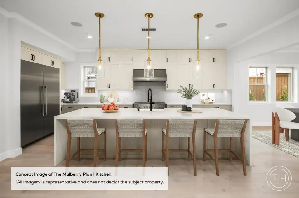 Set on a low-traffic, tree-lined street, this thoughtfully designed Traditional home sits on a large lot in a prestigious West Menlo location. The open-concept main level features a spacious great room and a well-appointed kitchen with a large island, walk-in pantry, and butlers pantry connecting to the dining area. Expansive sliders create a seamless indoor-outdoor flow to the patio. The main level also includes a flex room and a pocket office ideal for work-from-home or multi-use space. The private ADU includes a kitchenette, walk-in closet, and full bath. Upstairs, the primary suite features dual walk-in closets and a spa-inspired bath, while three additional bedrooms each include walk-in closets and access to full baths. A second-floor laundry room adds everyday convenience. Located within the highly regarded Menlo Park school district and within walking distance to Las Lomitas Elementary and Alameda de las Pulgas. Less than 10 minutes to downtown Menlo Park, Stanford University, and Shopping Center, Sharon Heights Golf & Country Club, and more. Buy early from Thomas James Homes to enjoy preferred pricing and design personalization. Estimated home completion is Early 2027. *All imagery is illustrative and subject to change and does not depict the subject property.”
