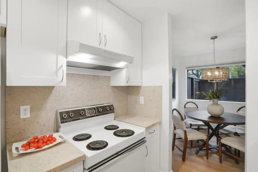 Exquisite remodeled ground-level end-unit in desirable Menlo Oaks. Bright open flr plan w/ wide-plank flrs & sleek modern baseboards, abundant natural light & stunning all-new lighting fixtures in every room. Spacious living rm w/ fireplace opens to private patio for seamless indoor-outdoor living ideal for relaxing or entertaining. Updated chefs kitchen w/ quartz counters white cabs & high-end finishes flows to dining area. Generous bdrms ample closets + remodeled baths w/ LED lighting modern mirrors & frameless glass showers. Triple-pane windows specially designed ceiling for dampening sounds fresh paint in-unit W/D add comfort & efficiency. Detached 1-car garage + assigned prkg + extra storage. Quiet well-kept community w/ pool lush landscaping & peaceful oasis feel. Walk to Caltrain close to downtown Menlo Park & Palo Alto shops dining cafes restaurants. Surrounded by mature trees Little Free Libraries Bike-friendly hidden paths & creek. Near Stanford Meta top tech, Avenidas senior center multiple neighborhood parks playgrounds trails, top Schls. Rare end-unit privacy turnkey Silicon Valley living in prime location. Low-maintenance lifestyle ideal for owner-user or investor strong rental appeal highly sought location. Modern finishes high-end touches upgraded throughout.