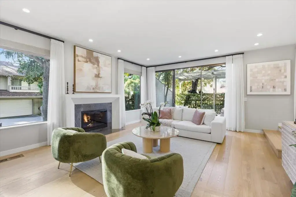 Discover refined style and effortless comfort in this beautifully appointed townhome nestled in the heart of desirable Sharon Heights. Thoughtfully designed with elevated finishes and a timeless aesthetic, this residence offers the perfect balance of luxury and livability. A calming neutral color palette is complemented by wide-plank white oak flooring, designer lighting, and refined finishes throughout. Vaulted ceilings and two gas fireplaces create light-filled, warm, and architecturally interesting living spaces. The chef’s kitchen is thoughtfully designed with high-end appliances, marble countertops, and abundant custom storage perfect for both everyday living and entertaining. The dining room features elegant built-in cabinetry that adds style and function, while the private patio provides a serene setting for al fresco dining, relaxing, or hosting guests. Ideally located next to the community pool and spa, this home also offers exceptional convenience with a two-car garage, solar power, electric vehicle charging, and close proximity to Sand Hill Road, Rosewood Hotel, Highway 280, shopping, dining, and outdoor recreation. Your opportunity to enjoy effortless, upscale living in one of the Peninsula’s most sought-after communities. Acclaimed Las Lomitas schools.