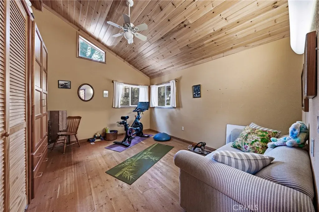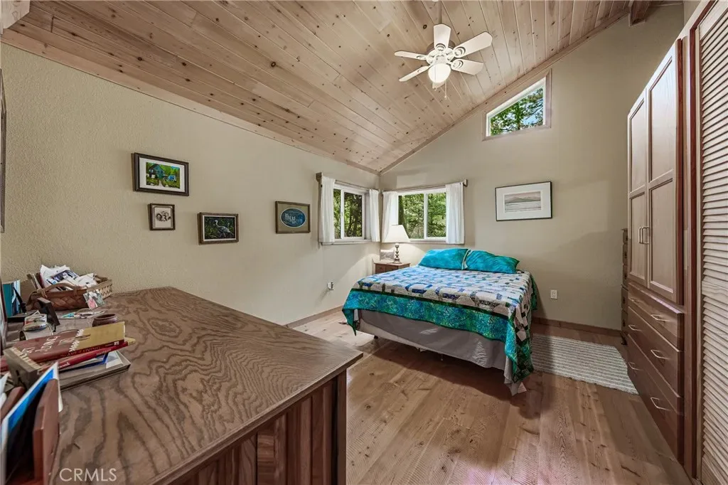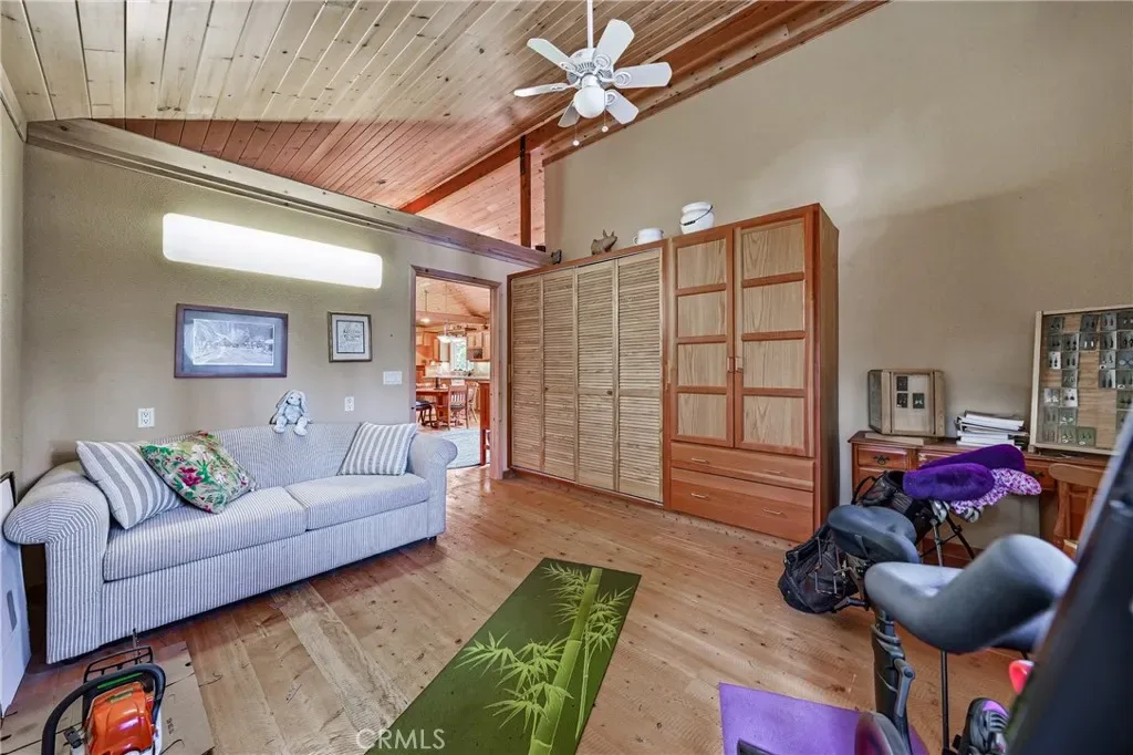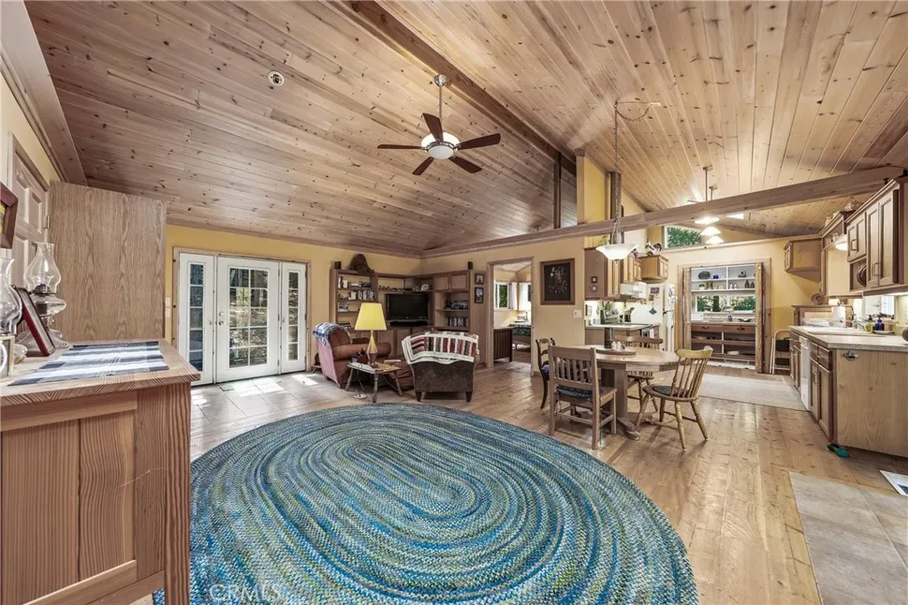 Majestic multi-family property with peace and privacy on over 4 acres, yet just 5 minutes to the heart of town. Main home was thoughtfully built by the owner, who was a master carpenter. The quality of construction and materials is evident all throughout the home, from the metal roof to the concrete slab foundation. This 1200sf 2 bedroom/1 bathroom has an inviting and open floor plan with the bedrooms on opposite sides of the house. Kitchen has lots of counter space and cabinets plus a walk-in pantry/baker’s closet. Knotty pine ceilings, fir floors, skylights, and spacious front/back decks invite you to bask in the mountain energy. Below the main home is a spacious workshop for all of your projects, and has a half bath for possible conversion to a studio living space.