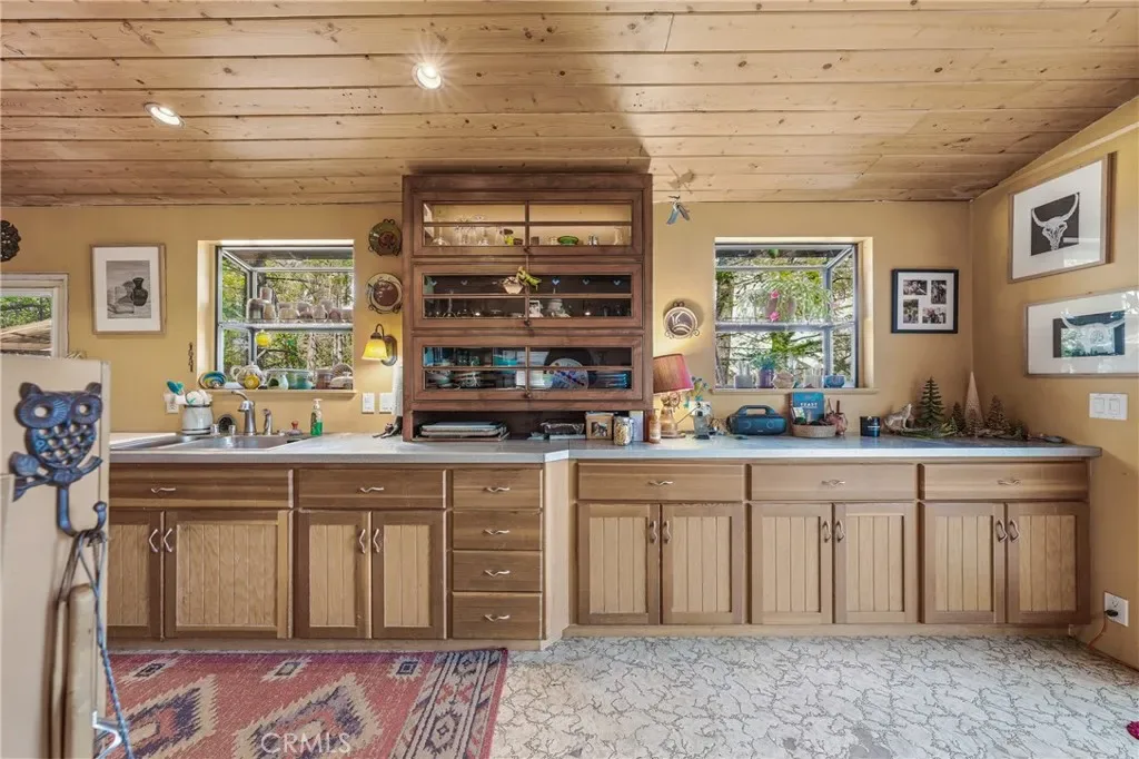 The second residence is a 1970 mobile home with 3 bedrooms/2 bathrooms and an addition built in 2015. The high ceilings and open kitchen/living area are warm and welcoming. Mini-split for efficient heating and cooling with woodstove to add extra warmth and ambiance when desired. The sliding glass doors invite you outside to enjoy the fresh air and beautiful views of the surrounding forest. Fenced-in yard area off the deck is ready for your pets and gardening, with a small art studio or greenhouse to play with your plants and crafts. Other features include an outdoor shower and jetted tub, RV hookup, and additional storage. This is the perfect property for generational living or relaxing retreat. Since the homes are non-conforming, this will not qualify for traditional financing; will need a cash offer or seller financing is available for up to 10 years with substantial down payment.