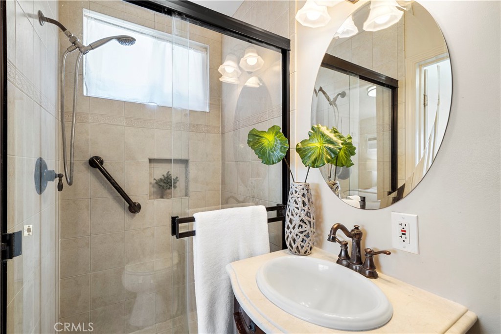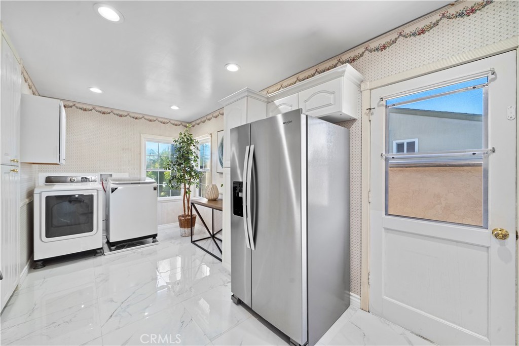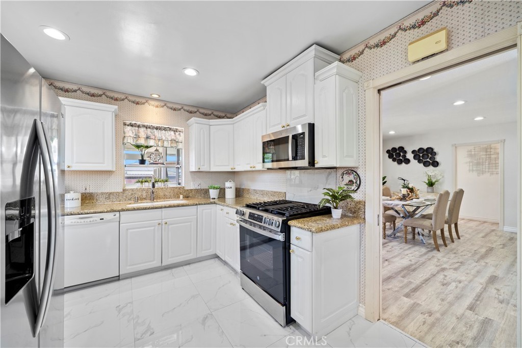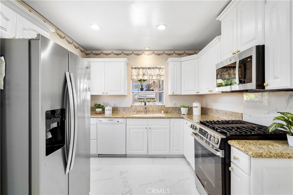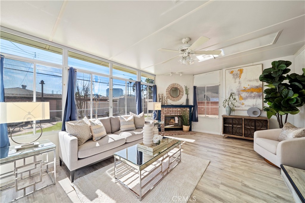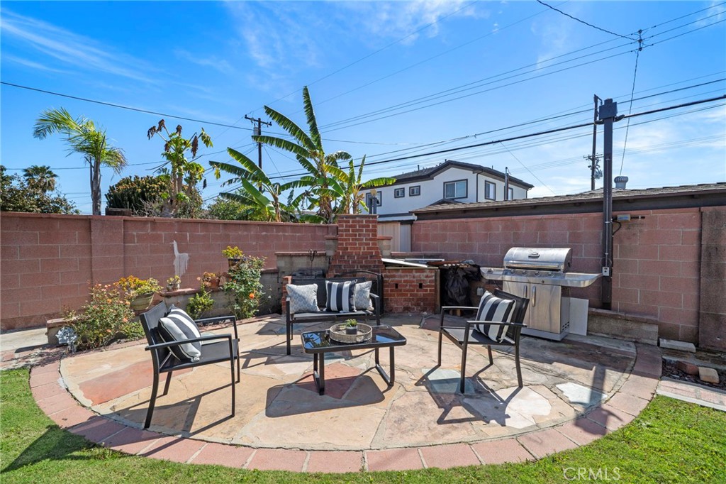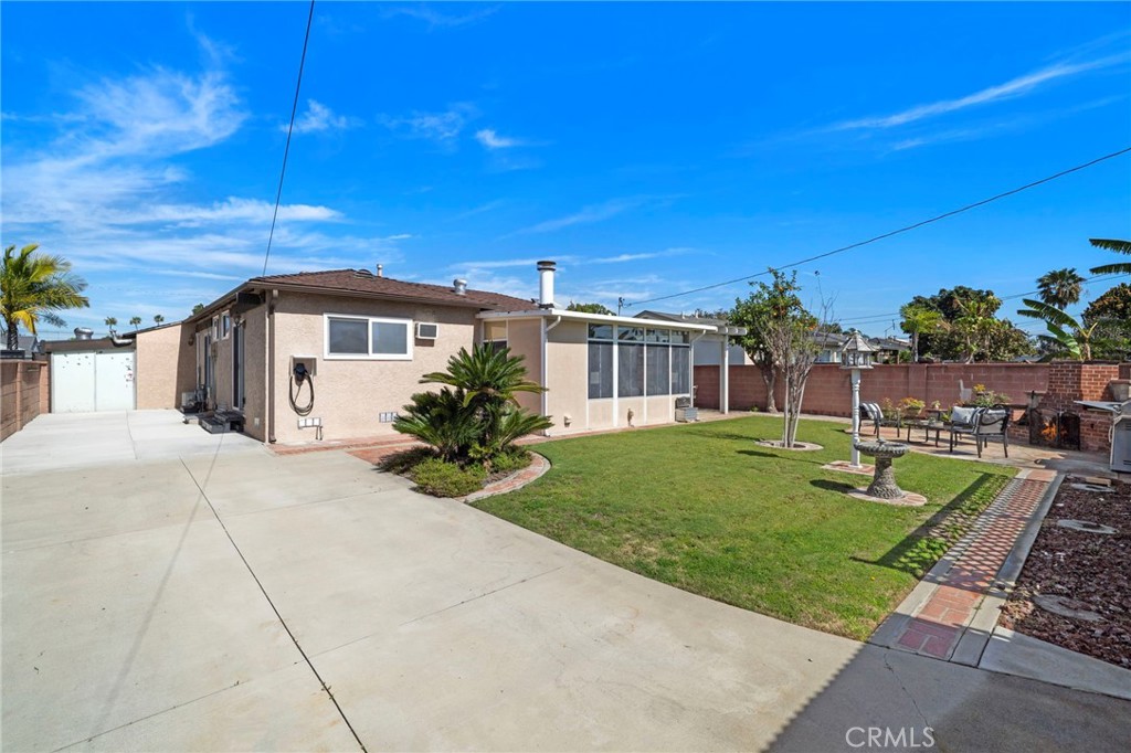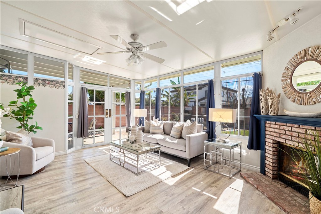 Wow! What a find! This absolutely charming, upgraded, and expanded single story home is located in the best Midway City neighborhood, one block from Huntington Beach, in an award-winning school zone, and has both a front driveway to a two-car garage AND a gated back driveway with alley access that can park 6 more cars or RV and includes a Tesla charging station. This sweet dream home offers 3 bedrooms, 2 bathrooms, and a total of 1,297 SQFT of the house – that includes: 1,059 SQFT, original home size, PLUS a beautiful 238 square foot sunroom with fireplace, ceiling fan, and French Doors opening to a pristine wrap-around tranquil backyard that includes a covered patio, a 2nd flagstone patio with outdoor fireplace, lush lawn, brick-accented hardscape, manicure landscaping, blockwall fencing, a storage shed, and that exceptional back driveway with gates to alley. Such a great backyard for entertaining! Beautiful curb appeal and welcoming front porch greet you. Step inside to Luxury Vinyl Plank Flooring, extensive recessed lighting, dual pane windows, mini-split A/C, and a remodeled kitchen which boasts granite countertops, Carrera-marble-style flooring, custom white cabinetry, garden window, and stainless gas stove & microwave plus dishwasher & refrigerator. There is a beautiful breakfast nook dining area open to the kitchen that has washer/dryer hook-ups (laundry can be inside or in garage). Both bathrooms are remodeled with new vanities, fixtures, and tile flooring, designer tile surrounds, and glass enclosures. There is a tub/shower combo in one and walk-in shower in the primary suite. This lovely home is truly located in an exceptional neighborhood near Little Saigon, Old World, Golden West College, and Bella Terra, the beach, and has easy freeway access.