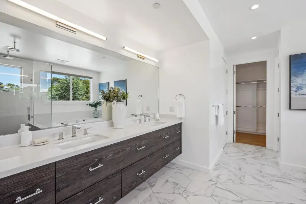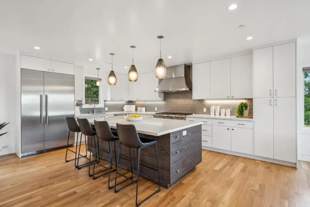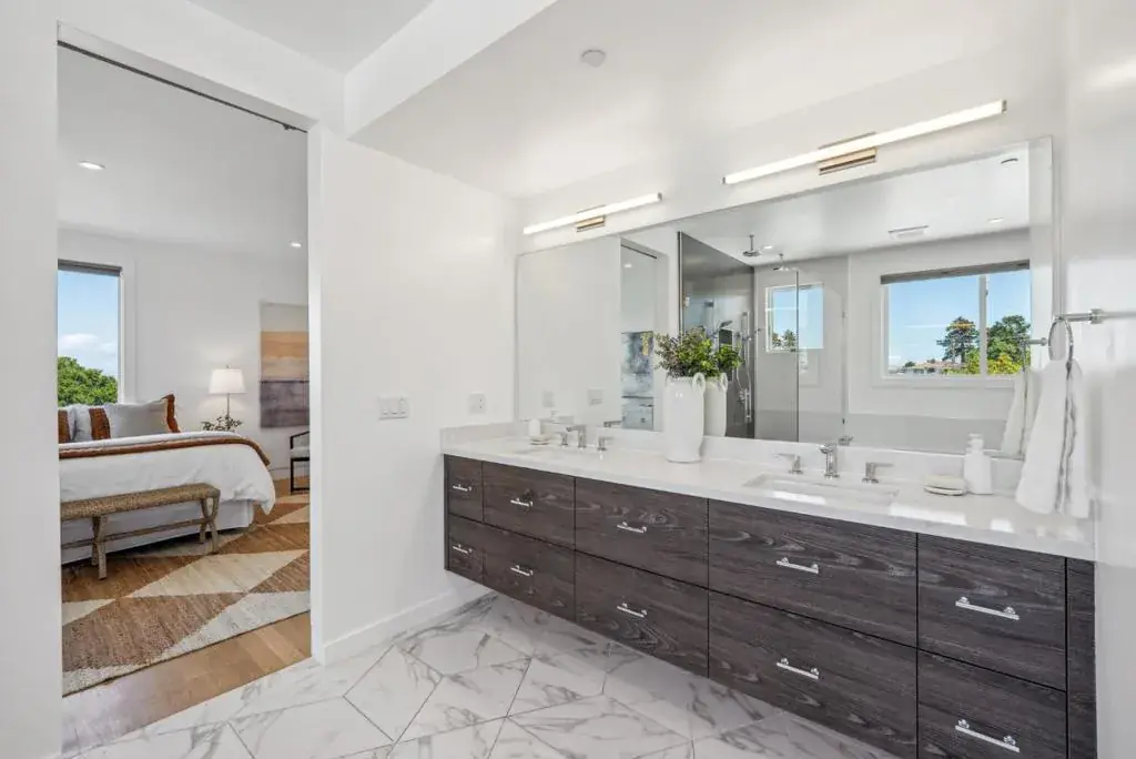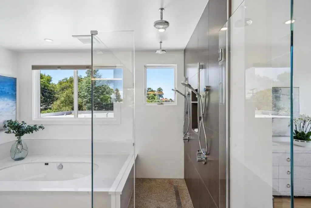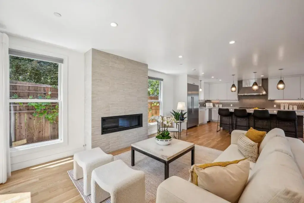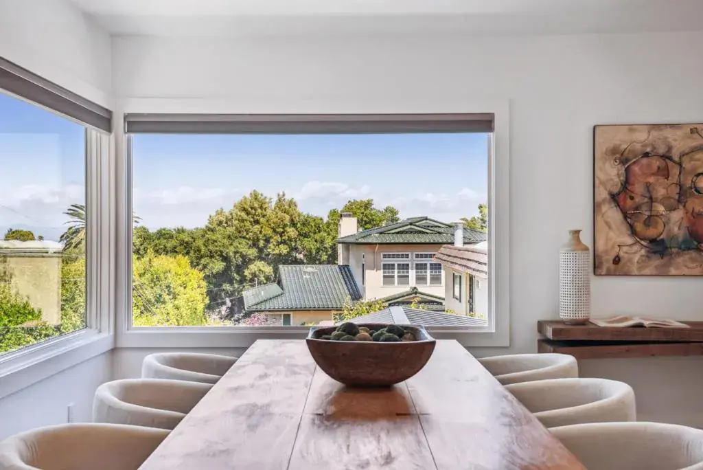 Rebuilt in 2019, this modern Millbrae home blends clean contemporary lines with calm, livable elegance, all set against sweeping Bay views that carry through the entire residence. Over 3,200 square feet of sun-filled space features wide-plank hardwood floors, soaring ceilings, crisp wall finishes, and expansive window walls that frame both greenery and the Bay beyond. The main level flows into a thoughtfully designed kitchen appointed with Thermador appliances, a spacious center island, and subtle geometric details that add a refined modern touch. Outdoor living is a defining highlight, with full-length view decks, a Zen-style patio, and a thoughtfully designed yard offering multiple places to relax, gather, or entertain. The primary suite provides a retreat-like experience with a soaking tub and dual showers, while five bedrooms plus a dedicated office offer flexibility for work, guests, or multi-generational living. Smart-home features, a three-car garage, and close proximity to top Millbrae schools and SFO further enhance comfort and convenience. A home where modern design, indooroutdoor living, and far-reaching Bay vistas come together with exceptional balance.