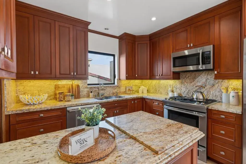 Location, Location, Location with a Walk Score of 83 (Very Walkable). Enjoy the best of Millbrae living in this beautifully located Mediterranean home less than half a mile from vibrant Downtown Millbrae, featuring diverse shopping, dining, and entertainment. Close to highly rated schools and Millbrae’s Central Park. Just over 1/2 a mile to Millbrae BART & Caltrain Station, while Highway 101 is only one mile away for an easy commute. Situated on a quiet, tree-lined street in desirable Highlands Millbrae, this charming residence showcases a red tile roof, graceful archways, classic stucco exterior, wrought-iron railings, and teal trim. Inside, the formal living room features a cozy fireplace, exposed beam ceiling, and expansive windows with a Juliet railing. Parquet flooring flows into the formal dining room through wooden double doors. The eat-in kitchen offers ample cabinetry, stainless steel appliances, granite countertops, and opens to a breakfast nook, family room, and upper-level deck. Two main-level bedrooms and a full bath include a primary bedroom with deck access. The lower level includes a private in-law unit with full kitchen, laundry, bedroom, bathroom, and patio access. The backyard offers a spacious lawn, mature landscaping, lemon trees, and a storage shed.
