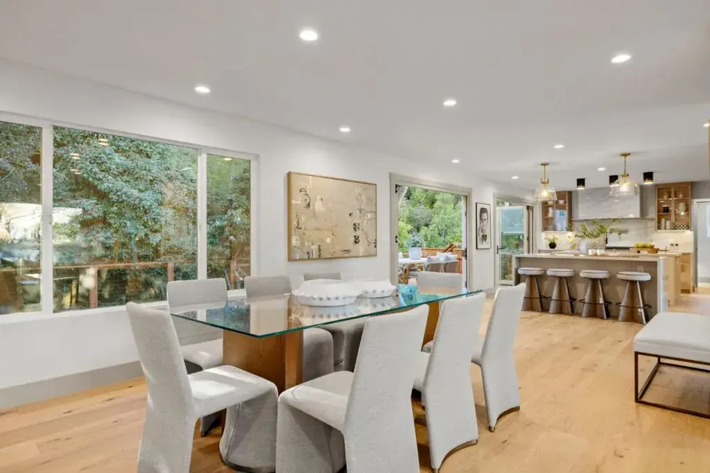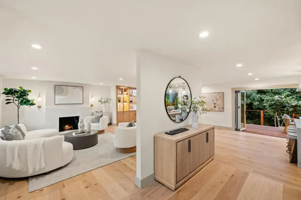 Fully reimagined 4BD/3BA Millbrae home with approx. 2,272 sq ft of refined living space. This light-filled residence features an open-concept layout, new wood flooring, new windows and doors throughout, and a brand-new designer kitchen with two islands, custom cabinetry, and luxury ZLINE appliances. Oversized La Cantina bi-fold doors connect the kitchen and dining area to a stunning redwood deck, creating seamless indoor-outdoor living.The private backyard backs to a serene creek, offering a rare wooded retreat. Recent exterior upgrades include a new front porch with redwood details, new walkways and driveway, fresh sod, and a new side fence with privacy lattice.Major system upgrades include updated electrical with new panel, updated plumbing as needed, new sewer lateral, new water heater, new fireplace damper, and a new dual-zone HVAC system. All bathrooms have been fully rebuilt with spa-inspired finishes, including a primary suite with walk-in closet and soaking tub. Conveniently located near top-rated schools, transit, and all that Millbrae has to offer.