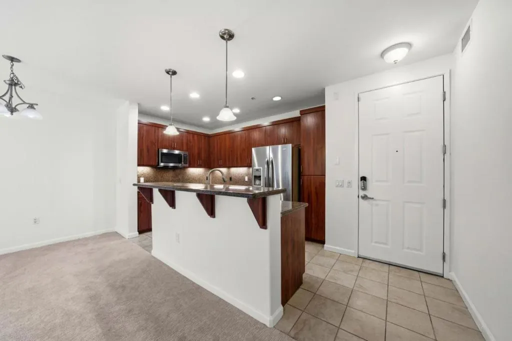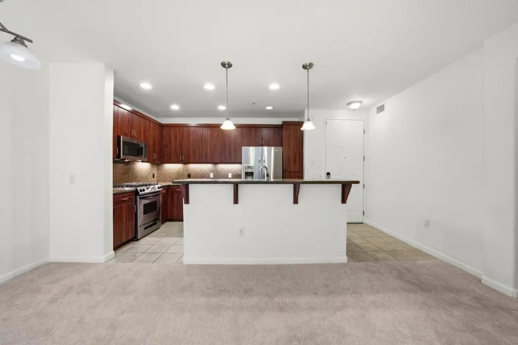 Welcome to Centrias finest! This rare and spacious 3-bedroom condo offers a perfect blend of comfort and modern style. The desirable open-concept floor plan creates a seamless living experience, complemented by serene green tree views from every bedroom. The gourmet kitchen has been tastefully updated with designer cabinetry, sleek granite countertops, and a full backsplash. Retreat to the massive primary suite, which features a generous walk-in closet for ample storage. The home is move-in ready, boasting brand-new carpets and fresh interior paint throughout, along with the convenience of a dedicated laundry room. Residents enjoy two side-by-side parking spaces in the secure garage, strategically located near the elevators. The comprehensive HOA fee covers water, and garbage. Centria offers resort-style amenities, including secure key-fob entry, a state-of-the-art gym, sparkling pool and spa, playground, and BBQ areas. Perfectly situated in a prime Milpitas location, you are just moments away from the Great Mall, local parks, BART, and major freeways.