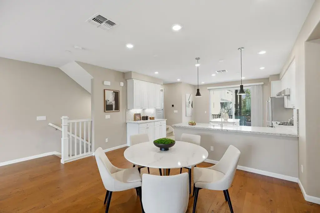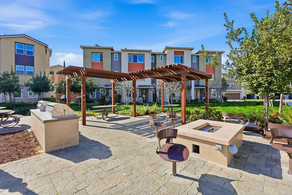 This stunning 2018-built KB Home townhouse perfectly balances modern elegance with functional design. With a desirable northeast-facing orientation, the residence is bathed in natural light through oversized windows, highlighting its airy, open-concept floor plan. At the heart of the home, the chefs kitchencomplete with sleek white cabinetry, a grand center island, quartz countertops, and premium stainless steel appliancesflows seamlessly onto a private balcony, ideal for morning coffee or evening relaxation. The luxurious primary suite features an expansive walk-in closet and a dual-sink vanity. For added versatility, the secluded ground-level bedroom suite is perfect for guests, a home office, or multigenerational living. Additional premium upgrades include a 3-zone HVAC system for personalized comfort, a true side-by-side two-car garage, and low HOA dues for added value and peace of mind. Unbeatable location: minutes from major tech campuses, BART, Great Mall, and major freeways. With access to top-rated Milpitas schools, this home offers a rare blend of style, convenience, and community.