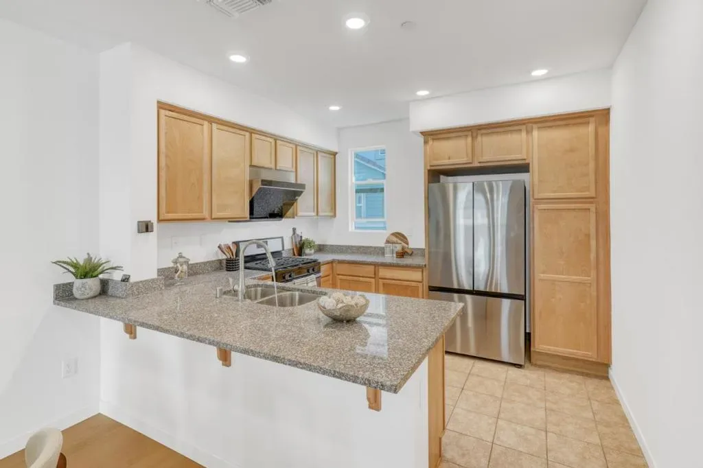Built in 2018 by Pulte Homes, this stunning turnkey residence offers the ultimate Silicon Valley lifestyle. The bright, open-concept floor plan shines with brand-new luxury vinyl flooring, fresh designer paint, and plush new carpeting throughout. At the heart of the home, a gourmet granite kitchen features high-end appliances, perfect for the home chef. Thoughtfully designed for flexibility, the main living level includes a full bedroom suiteideal for guests or multi-generational living. Upstairs, discover two spacious, light-filled bedrooms, each boasting a private en-suite bath, including a primary suite with a dual-sink vanity and walk-in shower. Step outside to your large private balcony to enjoy the fresh air. Unbeatable Convenience: Located just steps from top-rated MABEL MATTOS Elementary, STRATFORD School, and local parks. Commuters will love the walking-distance access to Milpitas BART and the Great Mall, with effortless access to I-880/680. Low HOA fees include garbage and common area maintenance. Dont miss this modern gem!