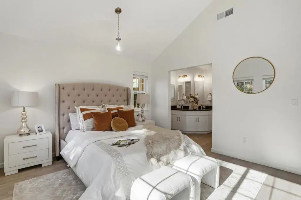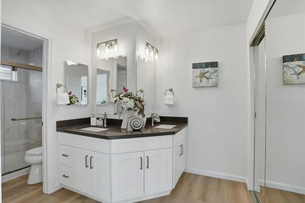 Discover modern luxury in this meticulously transformed Milpitas residence, almost rebuilt from top to bottom. This stunning home greets you with soaring high ceilings in the living room and elegant vaulted ceilings in the master suite, creating an atmosphere of airy sophistication. The home features premium laminate flooring throughout, brand-new cabinetry, sleek vanities, and is equipped with stainless steel appliances. The spacious master bedroom serves as a private retreat with its own beautifully updated ensuite bathroom. Modern comforts abound with new double-pane windows and central AC for year-round efficiency. Highly sought-after schools: John Sinnott elementary, Rancho Milpitas middle & Milpitas high. Situated minutes from Hwy 680, Milpitas BART, and VTA light rail. Enjoy unparalleled convenience with the Great Mall and Trader Joes nearby, while Target and Seafood City are just a short walk away. Combining designer style with an unbeatable location, this move-in-ready masterpiece is the perfect sanctuary for the discerning buyer.