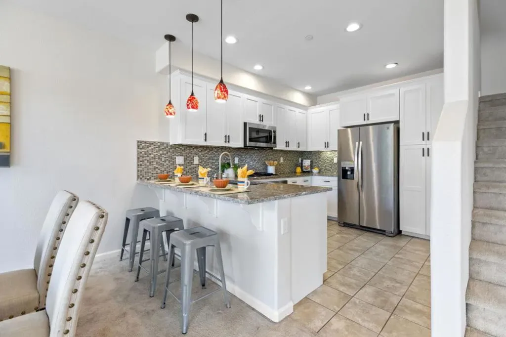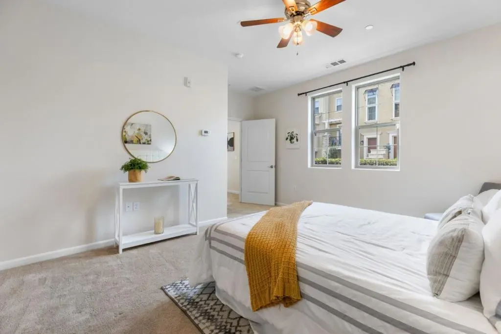 Discover refined comfort and modern style in this desirable end-unit townhouse in the Traverse community of Milpitas. This beautifully updated 3-bedroom, 3.5-bath home features a freshly painted interior and bright, airy living spaces. The 1st level offers a private bedroom en-suite with a walk-in closet ideal for guests, multigenerational living, or potential rental a deep storage closet under the stairs. The 2nd floor showcases an open-concept layout with living, dining, and kitchen areas, a powder room, and private balcony. The kitchen includes stainless steel appliances, granite countertops, a breakfast bar, & newly painted cabinetry & hardware. West-facing windows fill the living room with natural light, perfect for entertaining. On the 3rd level, the primary suite offers a walk-in closet and spa-like bath with dual sinks, separate shower, and soaking tub. An additional bedroom, hallway bath, laundry, and linen storage complete the top floor. Additional highlights: finished 2-car garage, community parking, low HOA dues that include garbage and a community play area and top-rated Milpitas schools. Convenient to 880/680, BART, light rail, tech hubs, and Great Mall. This turnkey home blends modern style with ultimate convenience. Open House Sat 03/14 & Sun 03/15 from 1-4 PM.