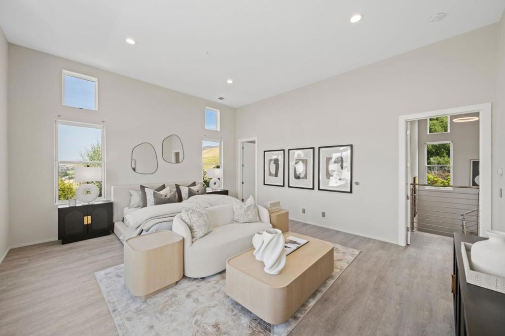 Designed by architect Daniel Solomon and set in the exclusive 13-home Lees Orchard community, 2698 Greenrock Road commands attention from the moment you arrive. Perched above Silicon Valley, the home captures sweeping bay and valley views, while a stunning remodel has transformed this 4,651SF contemporary residence into a refined showpiece. The gourmet kitchen and great room anchor the home, featuring Wolf and Sub-Zero appliances, gas cooktop, built-in refrigerator, oversized island, and walk-in pantry. Expansive windows and doors fill the space with natural light and create seamless indoor-outdoor flow. Five bedrooms, including a luxurious primary suite with a spacious bath and walk-in closet, plus a private office, 3.5 baths, and large laundry room provide both comfort and flexibility. Notable features include high ceilings, multi-zone radiant heating and cooling, 3-car garage with dual EV chargers, 400-amp service, and owned solar.. The private hillside setting offers multiple entertaining areas with a huge covered deck, multiple patios/decks, storage sheds and orchard, all on ~1.5 acres, along with access to a community pool. Ideally located near top Milpitas schools, freeways, VTA light rail, and BART. Come see this one-of-a-kind home and appreciate all it has to offer!