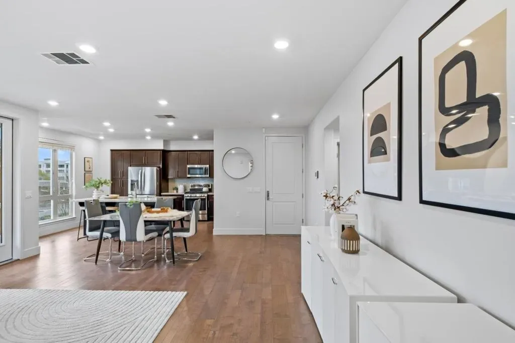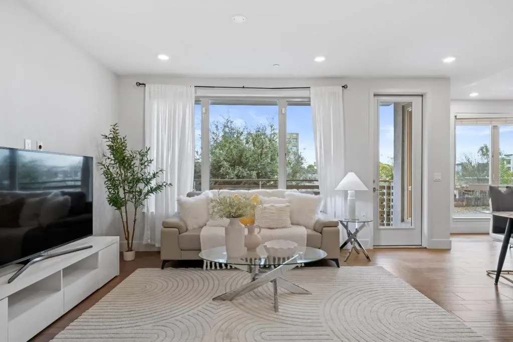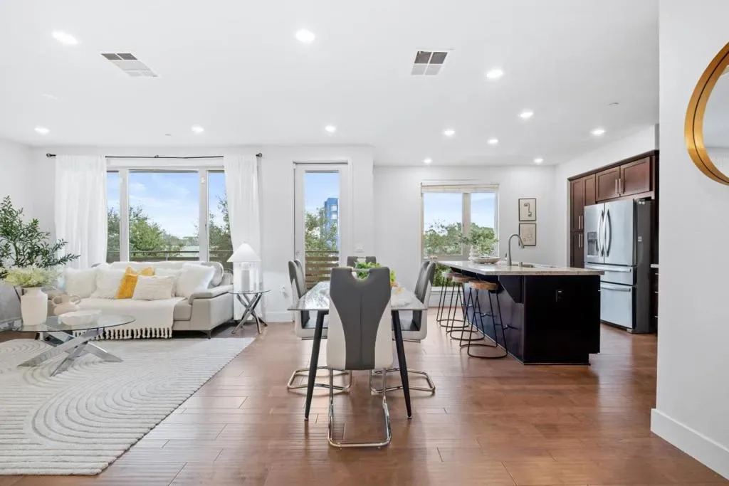 *Discover effortless sophistication in this stunning single-level condo, thoughtfully crafted for modern living and refined comfort. Designed with style and functionality in mind, this home features contemporary finishes, abundant customized cabinetry, sleek stainless steel appliances, and a large center island that anchors the beautifully upgraded kitchen. *The open layout flows seamlessly into the dining area and the spacious living room, where expansive windows invite in abundant natural light and create a warm, welcoming ambiance. Step out onto the connected patio to enjoy fresh air and relaxation. *A dedicated laundry room and an additional storage room add practicality and convenience. The spacious primary suite offers a true retreat experience, complete with a resort-style bath featuring dual sinks, a generous walk-in closet, and a private separate toilet room. Additional highlights include a private 2-car side-by-side garage and secure entry, elevator access, enhancing daily ease and accessibility. *Families will appreciate proximity to highly regarded Northwood Elementary School, rated 9 for test scores on GreatSchools, adding outstanding educational value to this exceptional home.