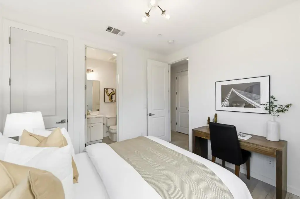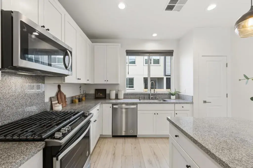 Bright and spacious corner townhouse featuring abundant windows and excellent natural light throughout. Customized blinds provide full blackout for optimal comfort and privacy. The first floor offers a private bedroom suite, ideal for elderly family members, guests, or potential rental income. An open-concept layout with an extra family room seamlessly connects to the outdoor patio, creating an inviting space for everyday living and entertaining. The gourmet kitchen features a granite island and countertops, stainless steel appliances, and elegant glass pendant lighting. Upstairs offers two bedrooms thoughtfully designed to provide privacy for the primary suite, along with ample space for working from home or entertaining. Additional highlights include a side-by-side garage with a 220V outlet, making the home EV-ready. Low HOA dues include trash, water, and solar, resulting in minimal utility costs. Located in a desirable school district with Northwood Elementary School rated 7, ideal for growing families. Conveniently situated with easy access to South Bay and East Bay commutes, close to major tech companies, and minutes from shopping and dining at Milpitas Mall.